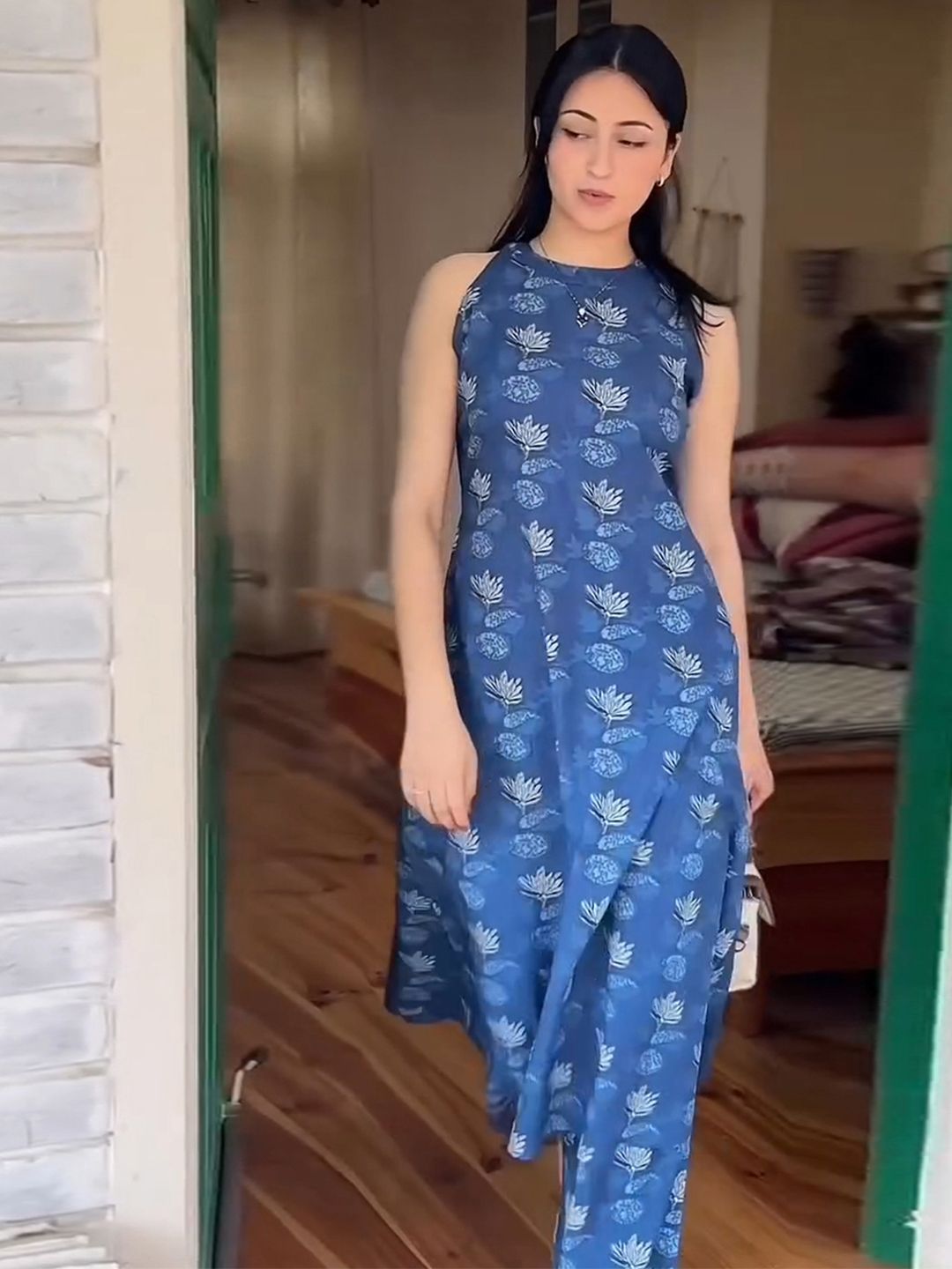 GoSriKi Floral Printed Round Neck A-Line Kurta With Palazzos
