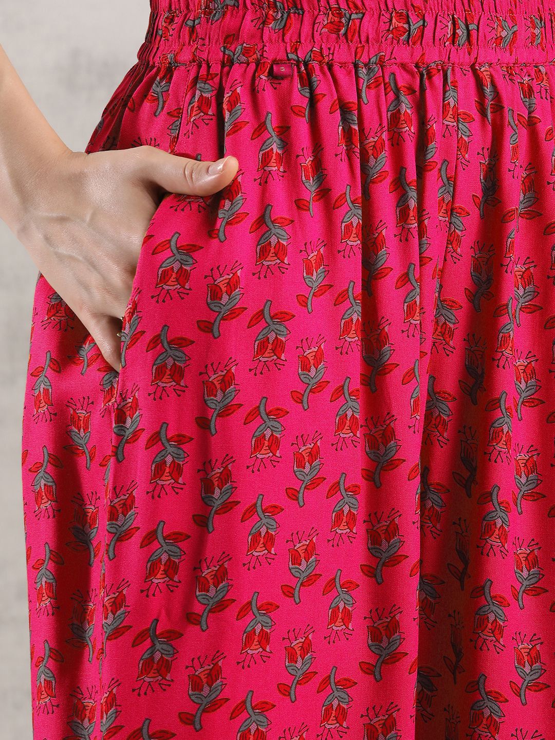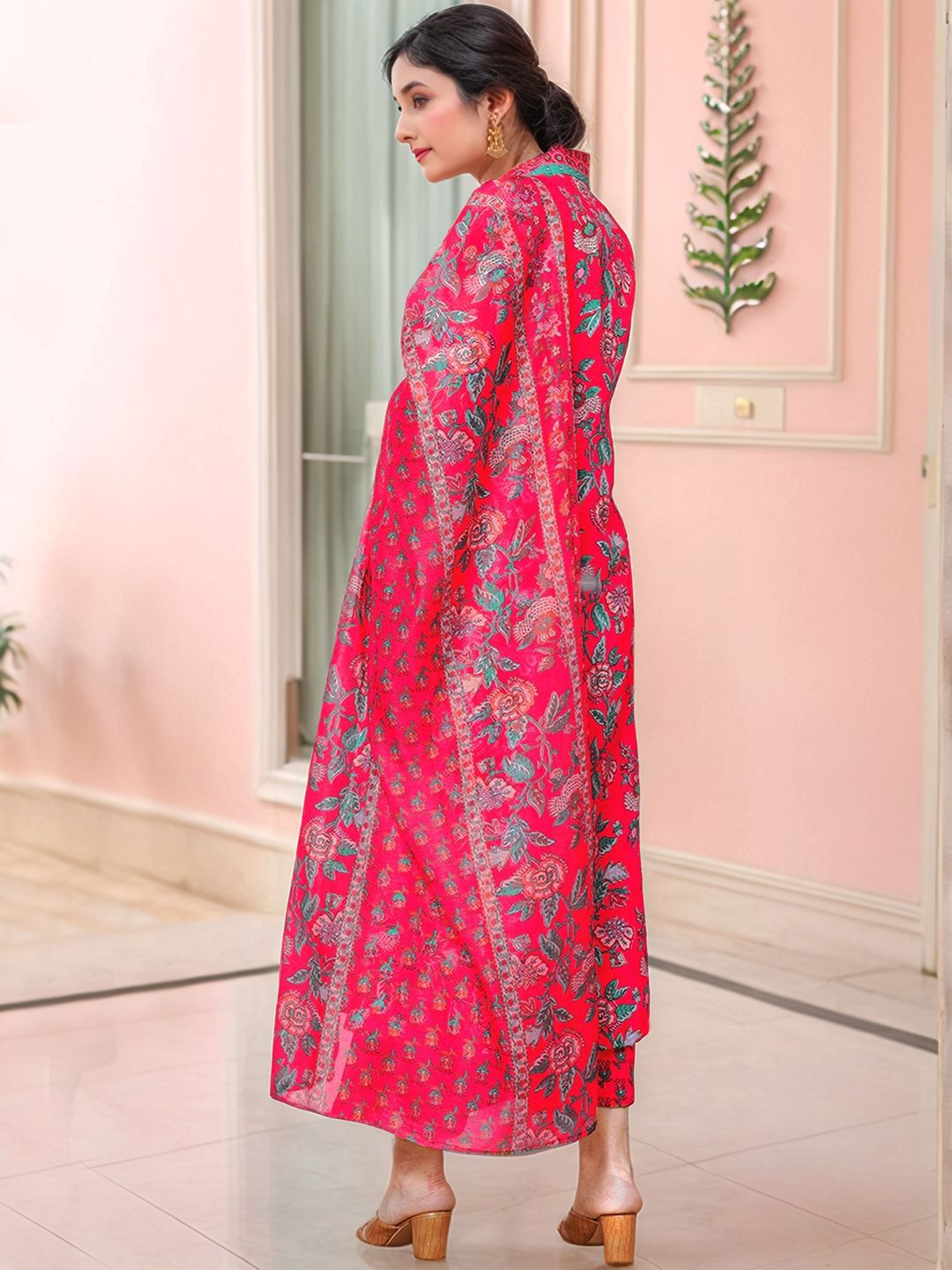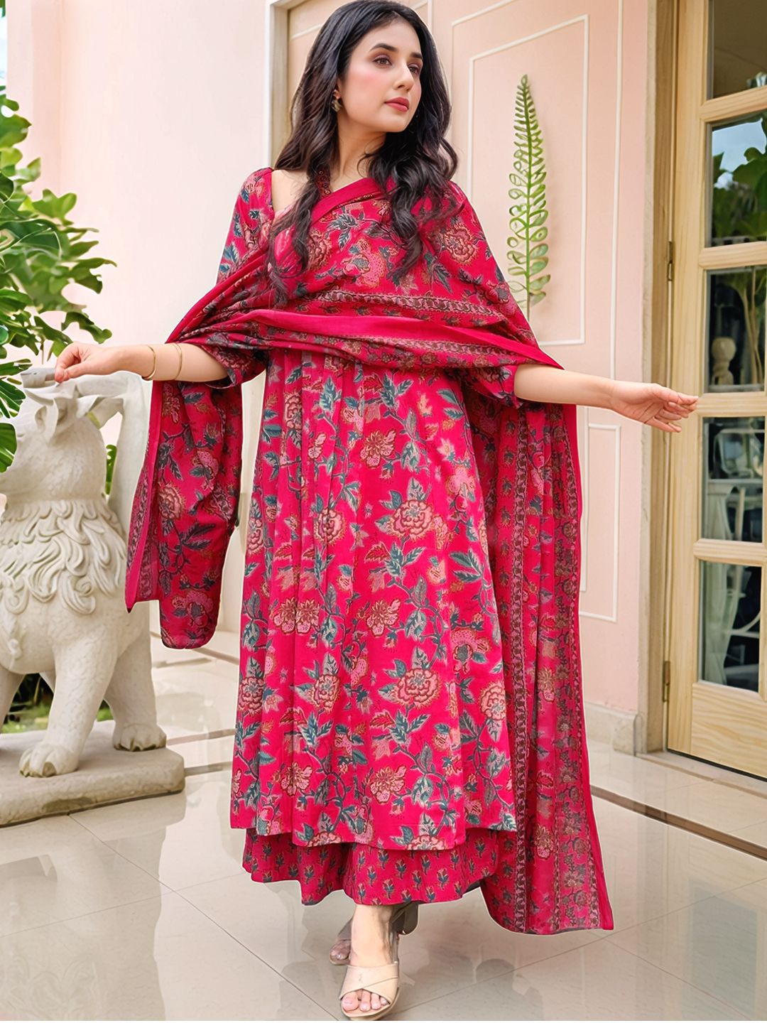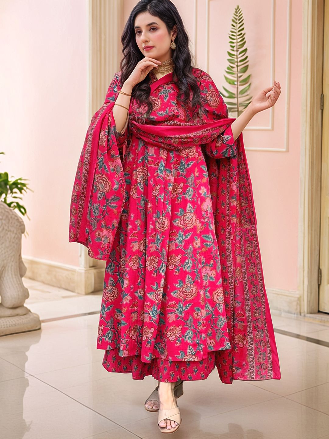 GoSriKi Floral Printed V-Neck Anarkali Kurta With Palazzos & Dupatta