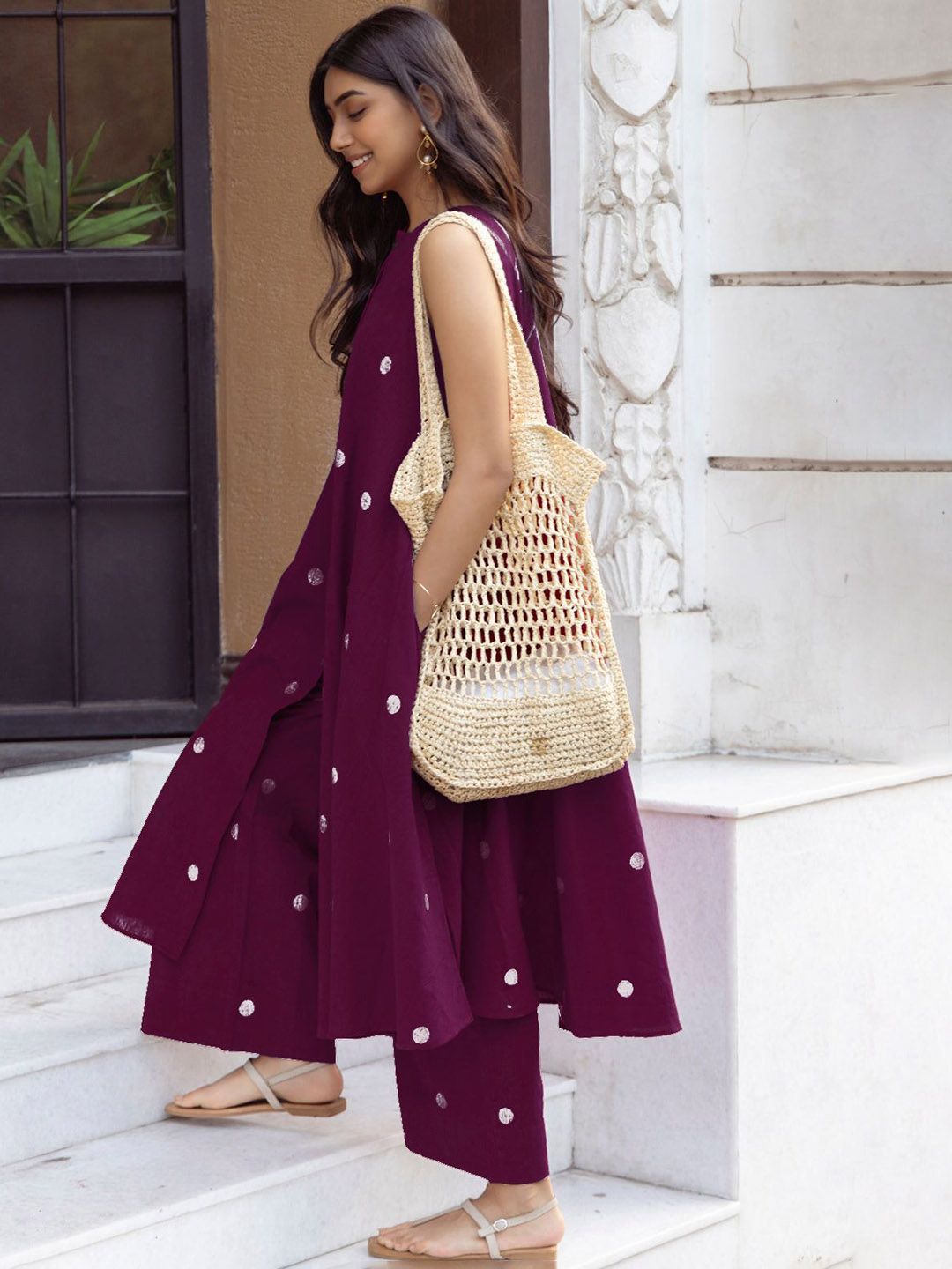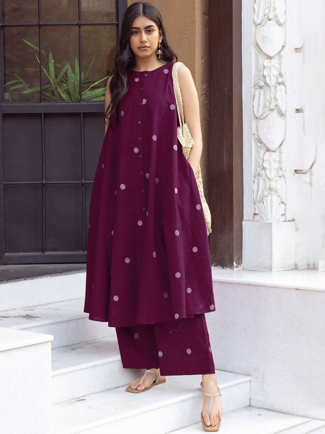 GoSriKi Geometric Printed Round Neck A-Line Kurta With Palazzos