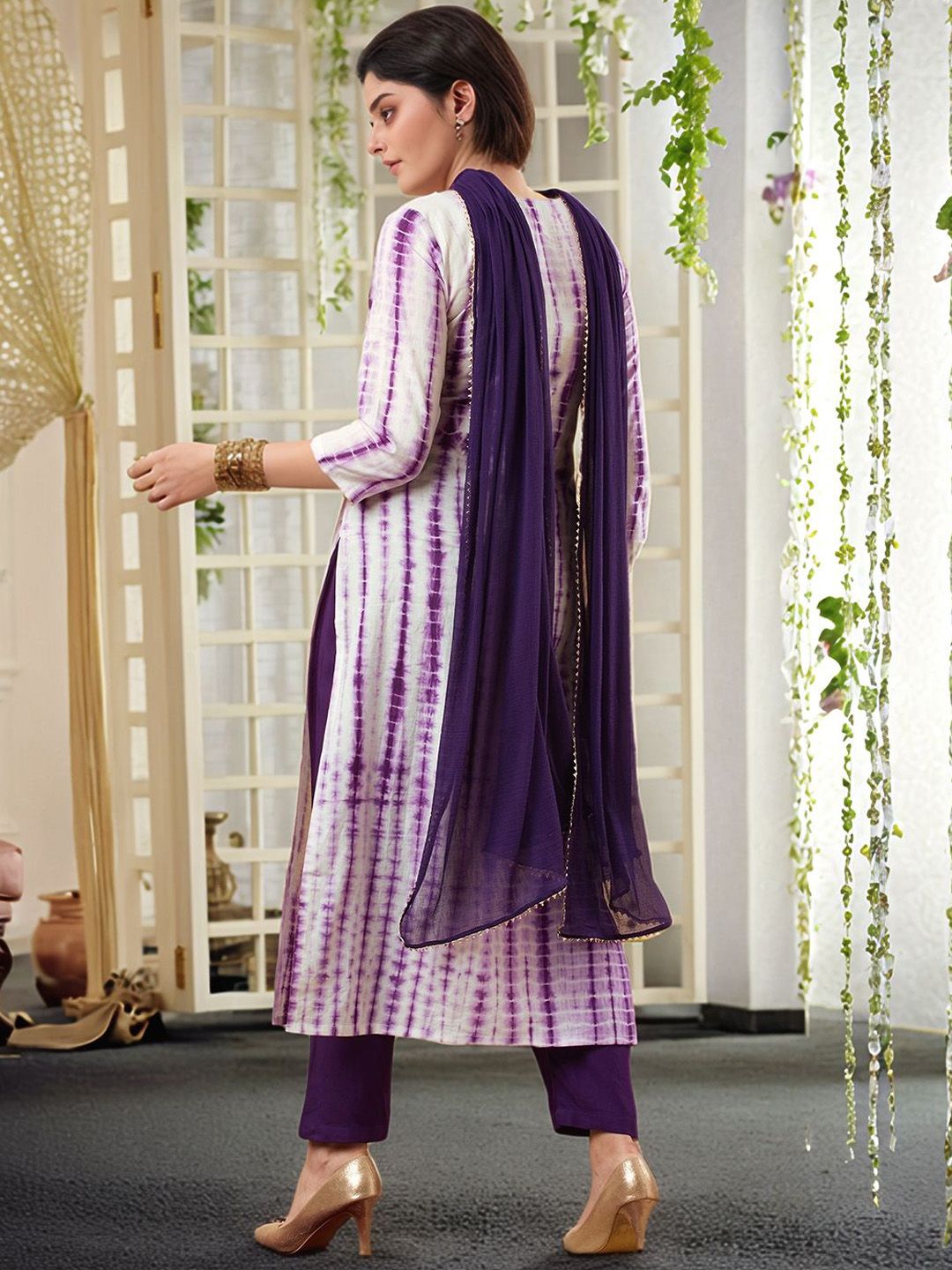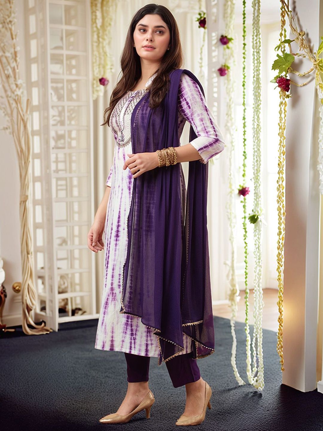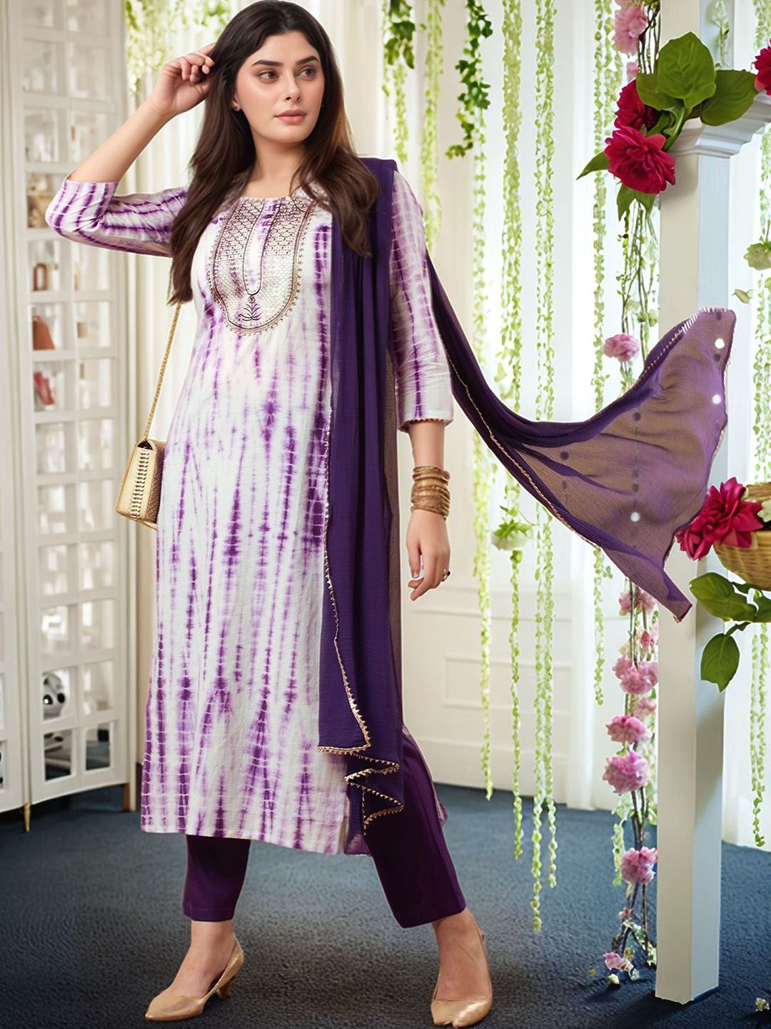 GoSriKi Tie And Die Printed Round Neck Straight Kurta with Trousers & Dupatta