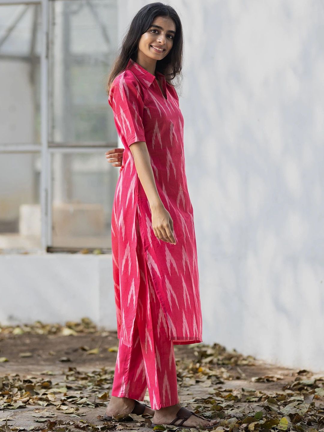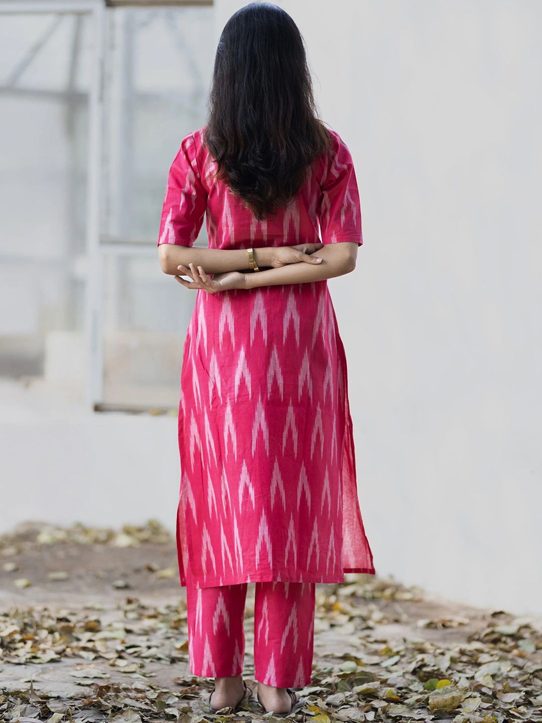 GoSriKi Women Chevron Printed Kurta with Trousers