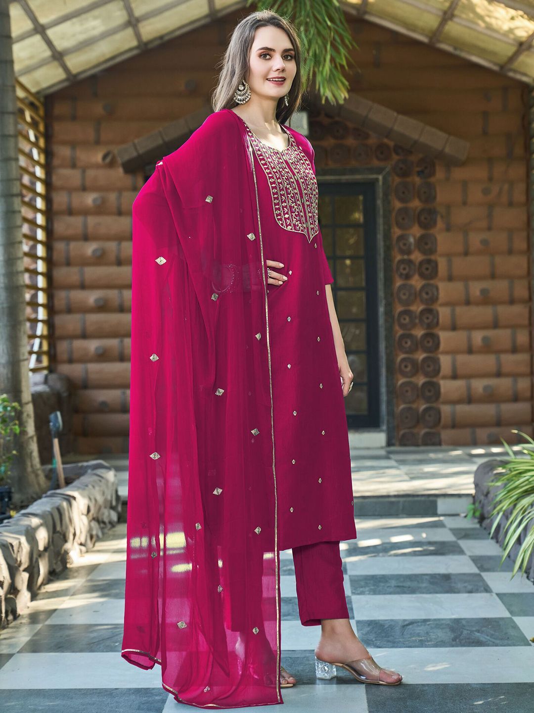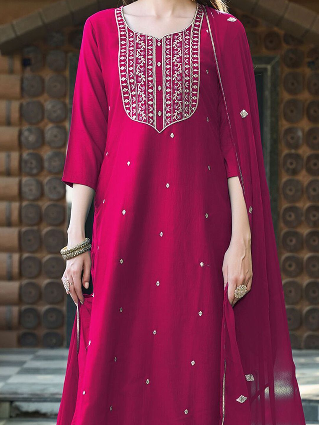 GoSriKi Women Floral Embroidered Kurta with Trousers & Dupatta