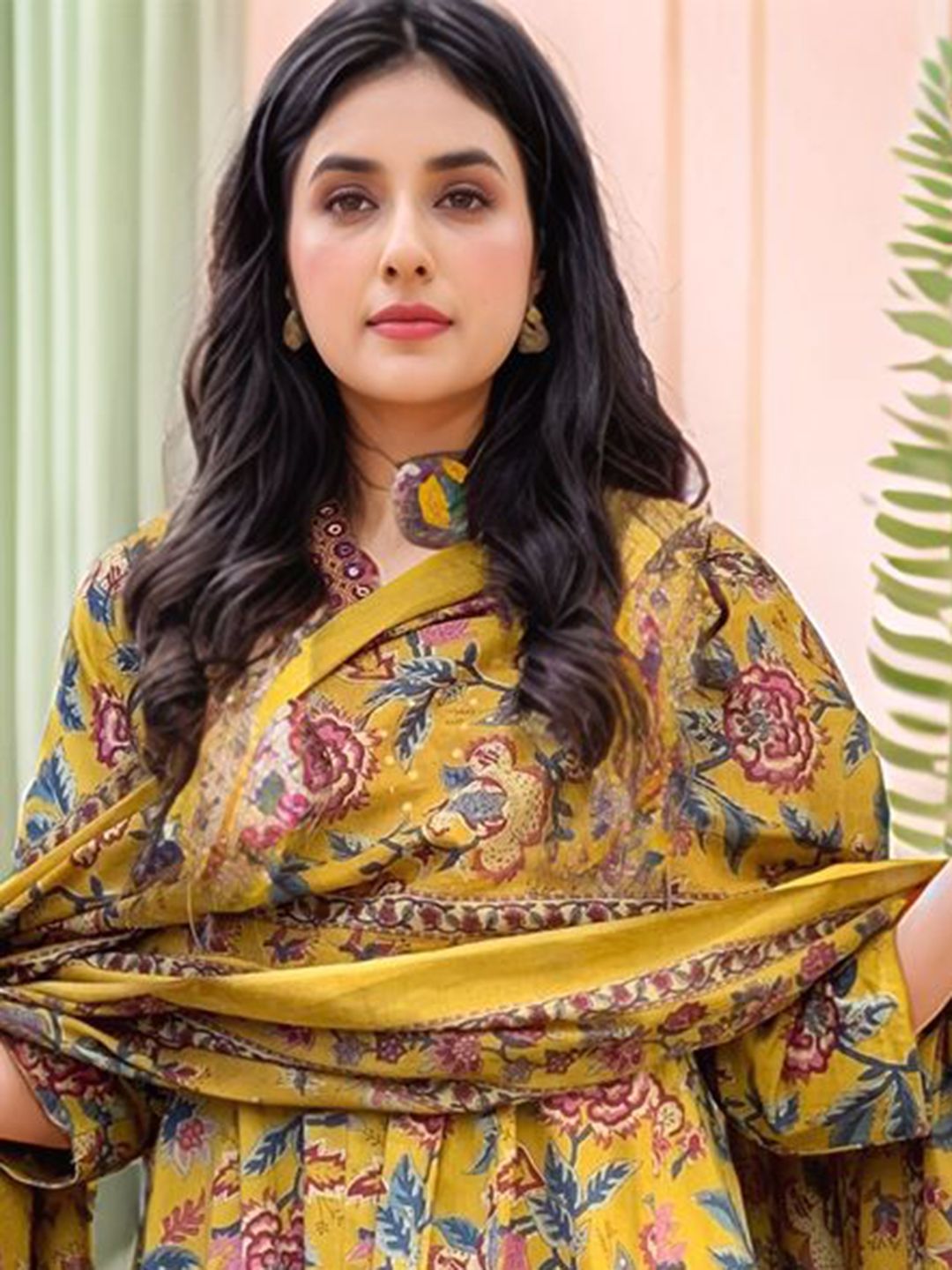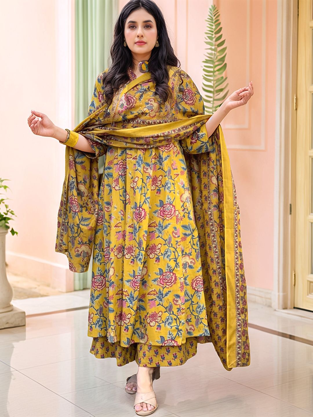 GoSriKi Women Floral Printed Kurta with Palazzos & Dupatta