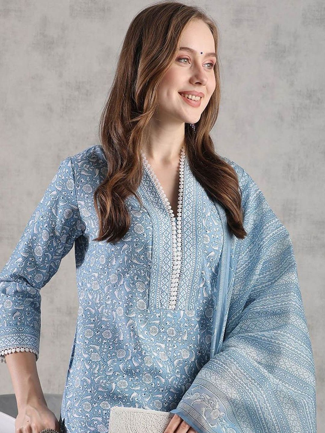 GoSriKi Women Floral Printed Kurta with Trousers & Dupatta