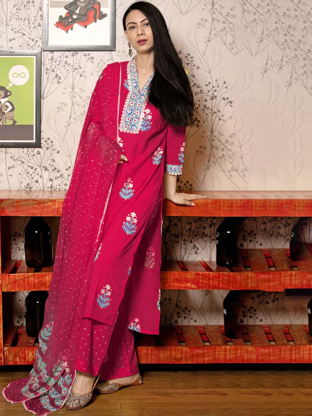 GoSriKi Women Floral Printed Mandarin Collar Kurta With Palazzos & Dupatta