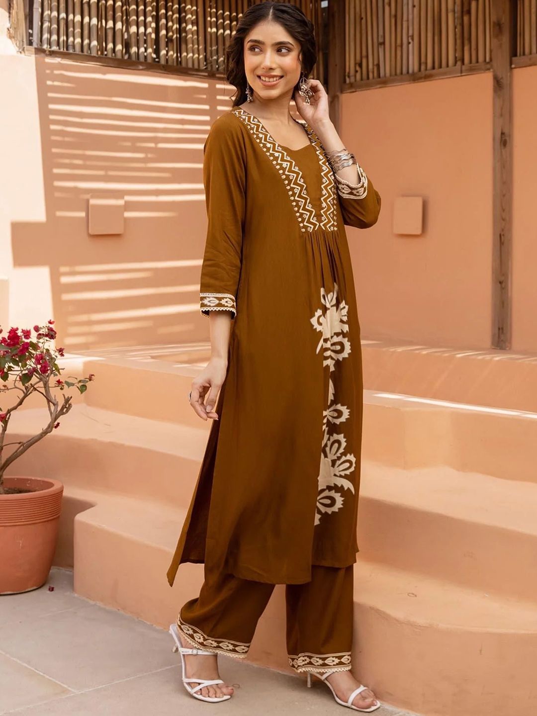 GoSriKi Women Floral Printed Regular Kurta with Palazzos