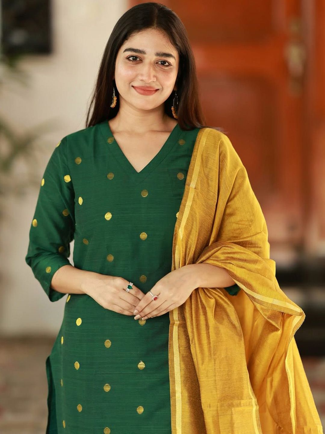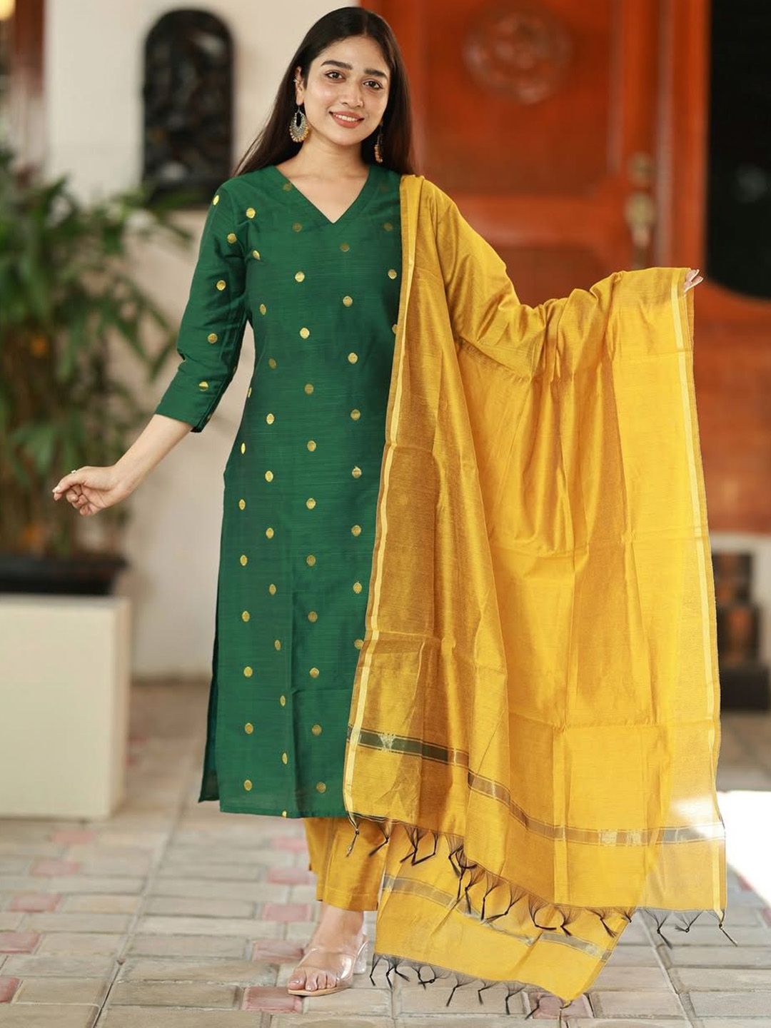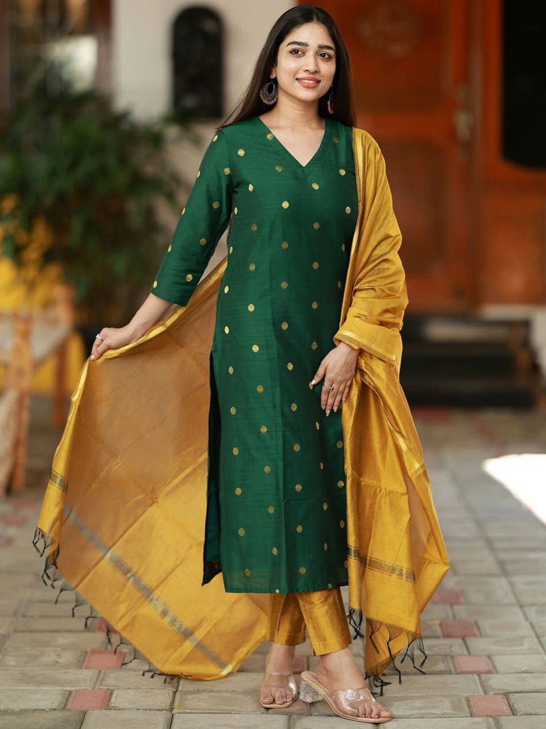 GoSriKi Women Geometric Printed Kurta with Trousers & Dupatta