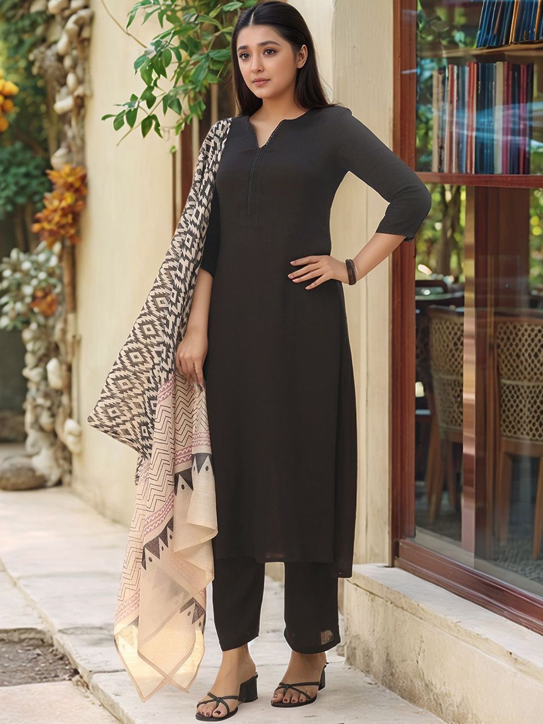 GoSriKi Women Geometric Printed Kurta with Trousers & Dupatta