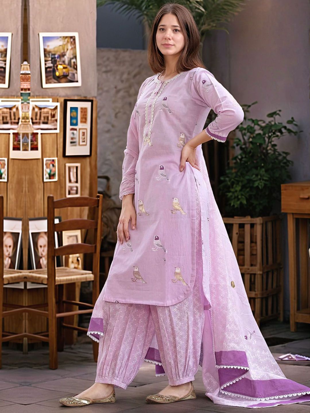 GoSriKi Women Printed Regular Kurta with Trousers & Dupatta