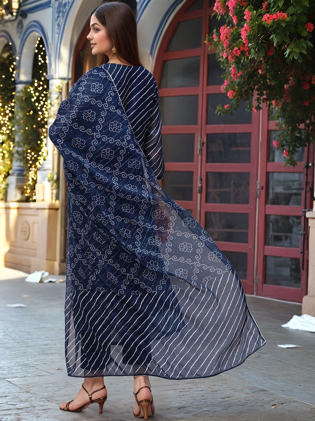 GoSriKi Women Striped Embroidered Thread Work Kurta Set With Dupatta