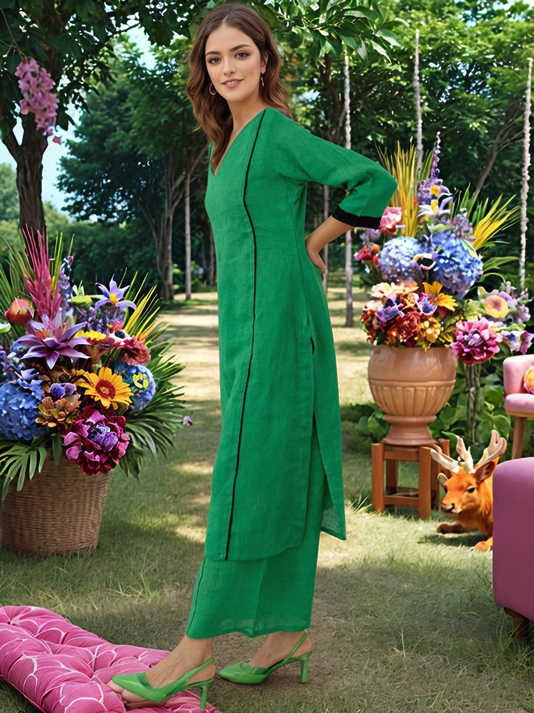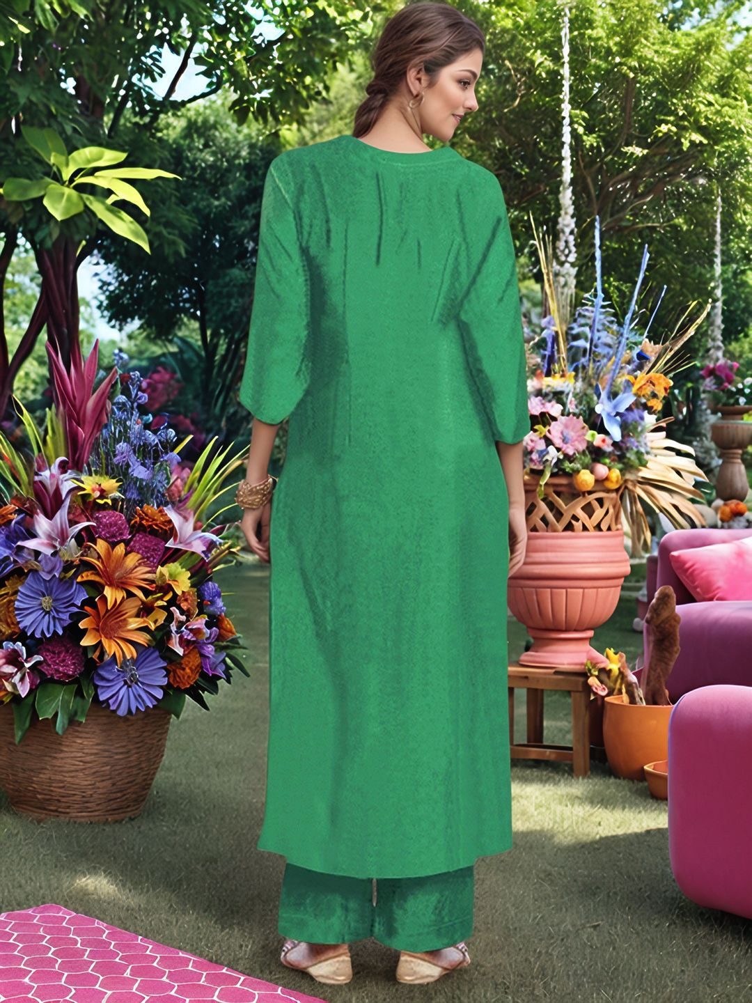GoSriKi Women V-Neck Straight Kurta with Palazzos