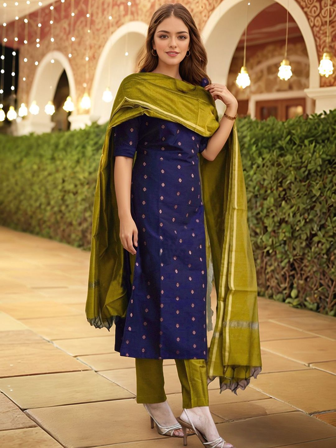 GoSriKi Women Woven Design Kurta with Trousers & Dupatta