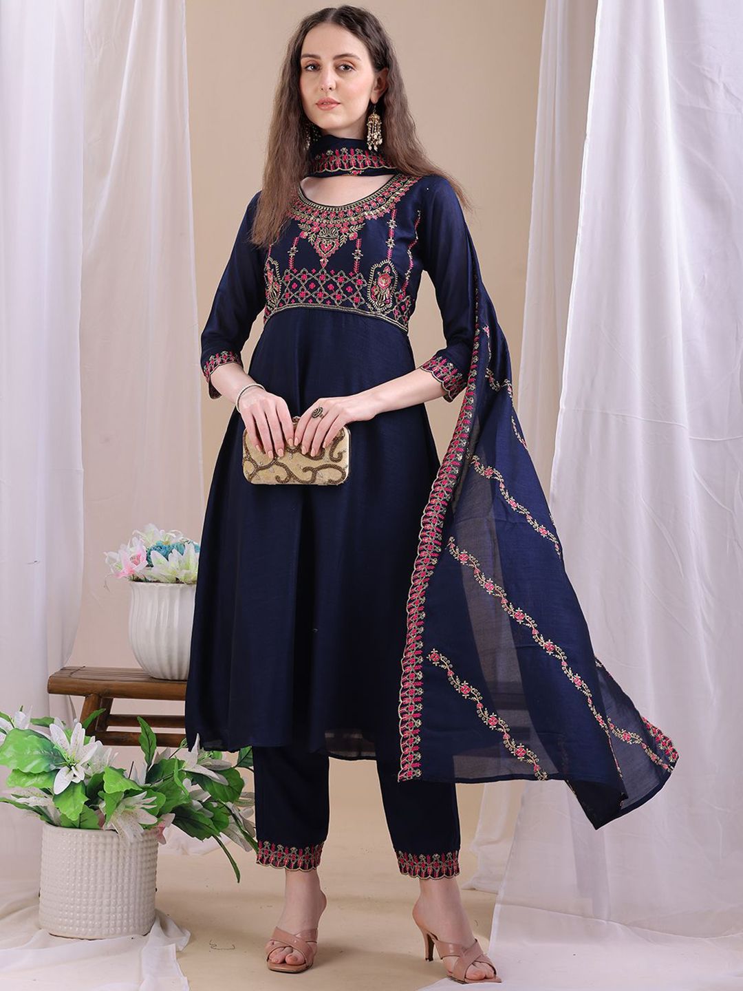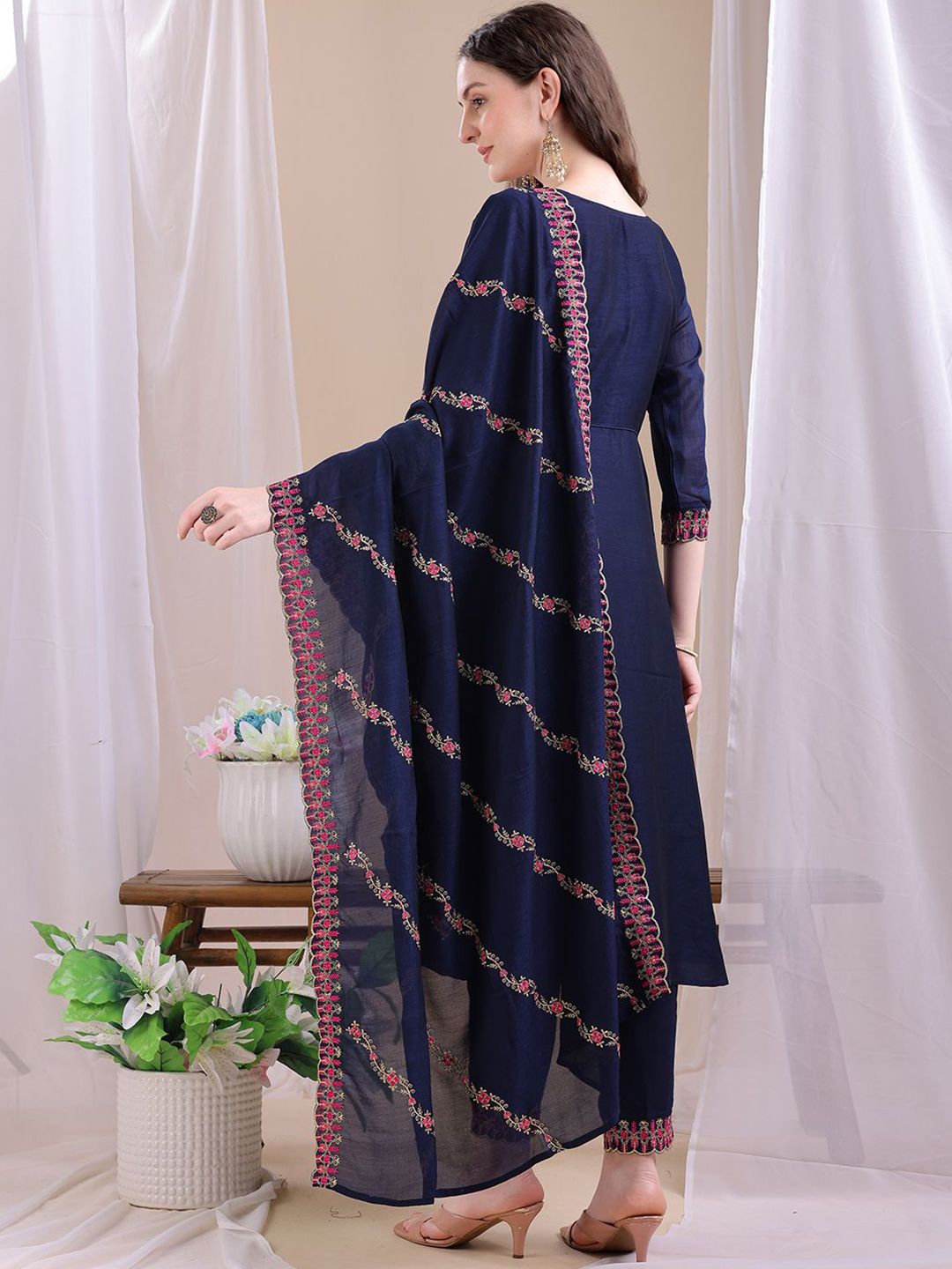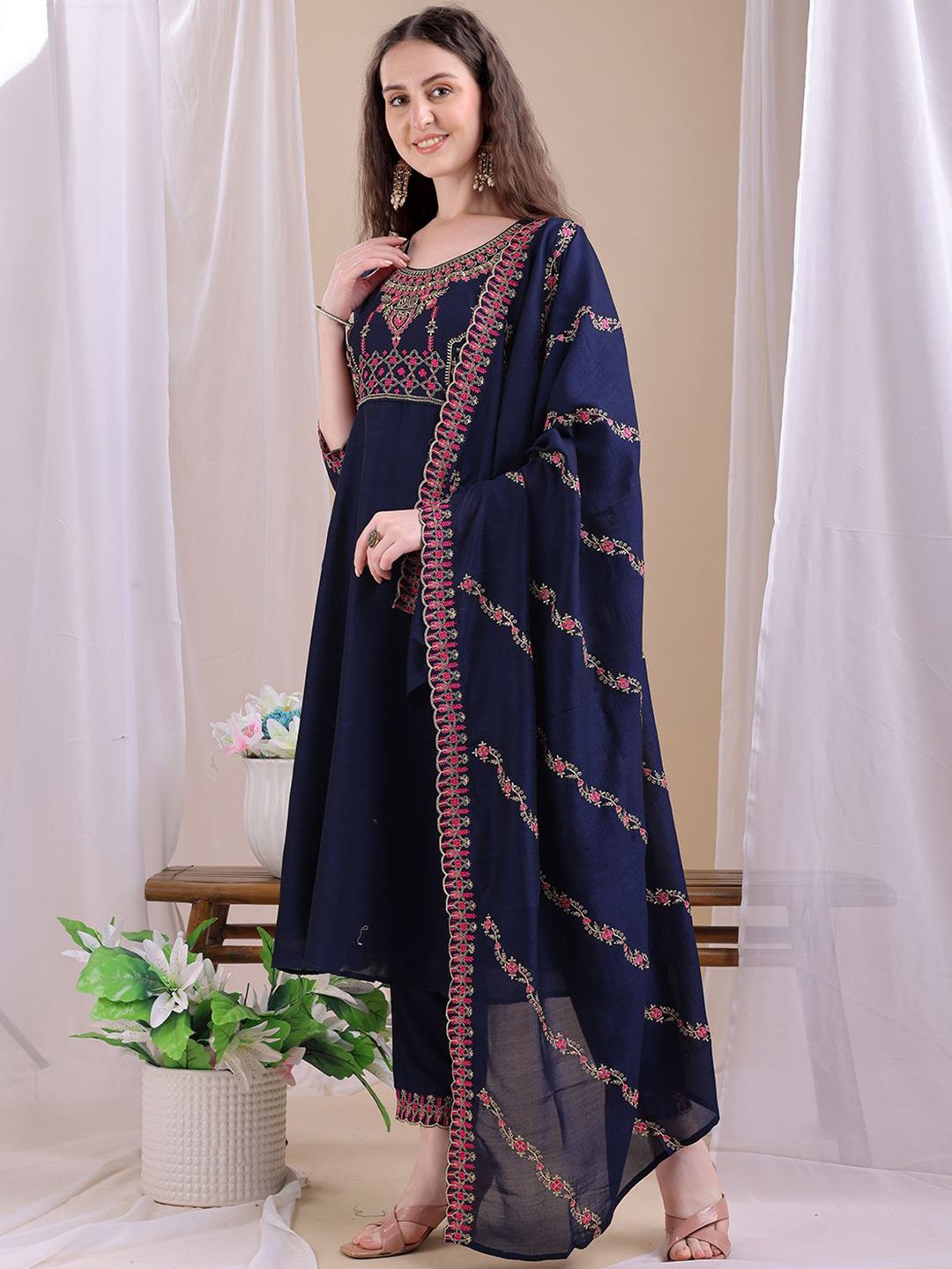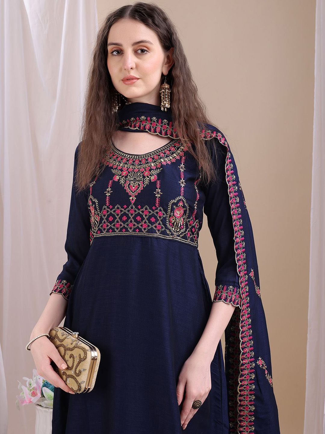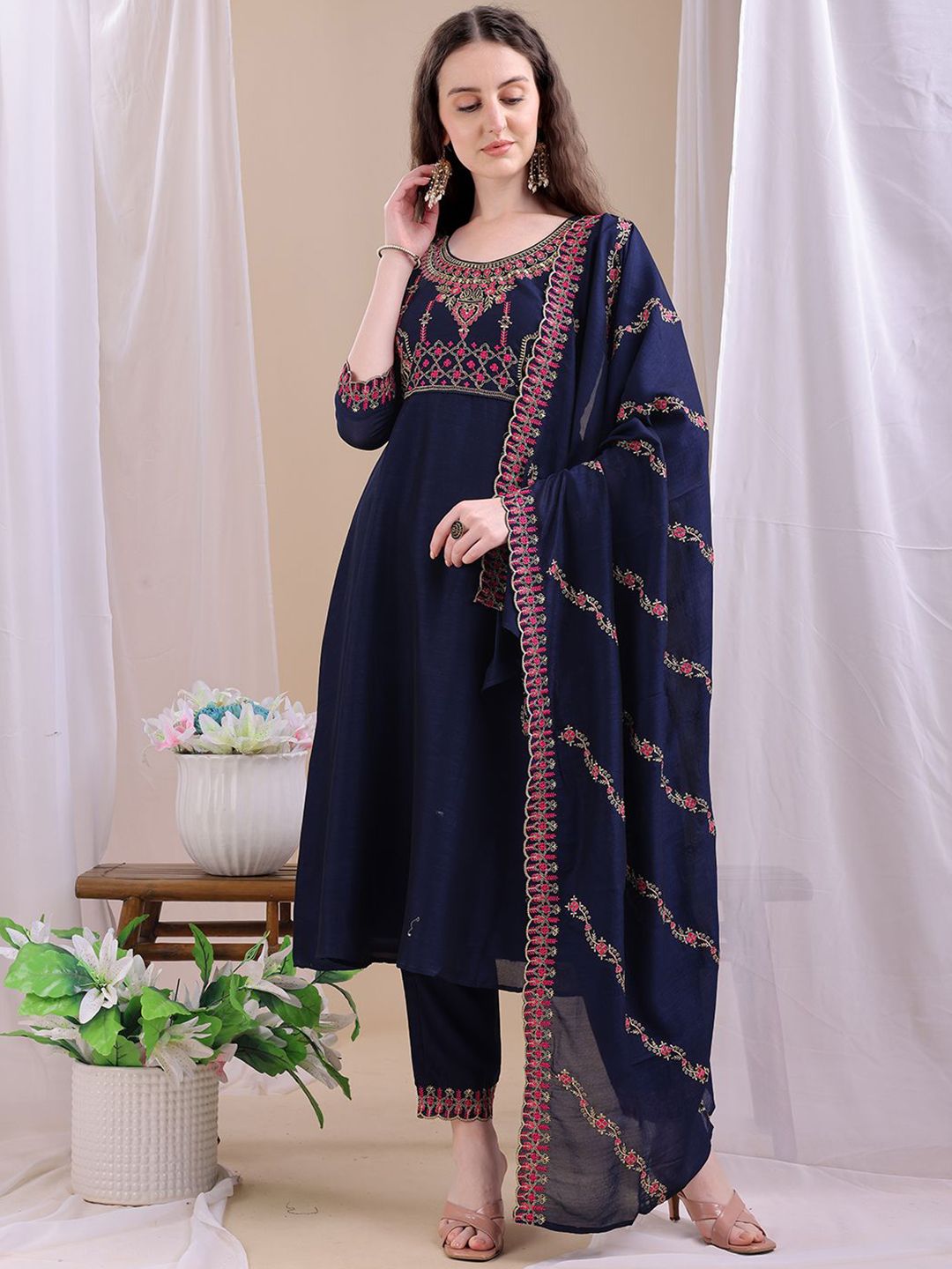 Granthva Fab Ethnic Motifs Embroidered Thread Work Kurta With Trousers & Dupatta