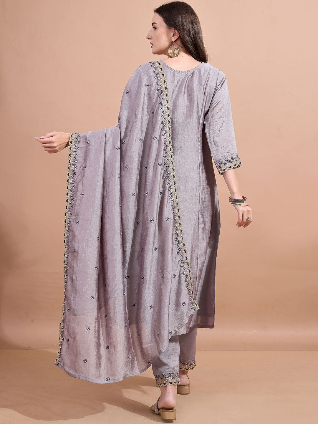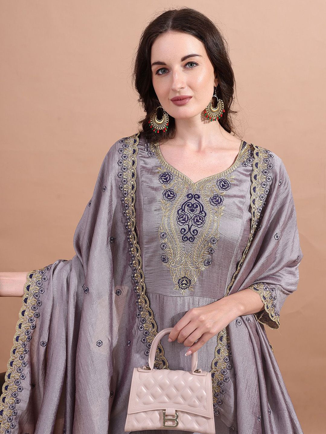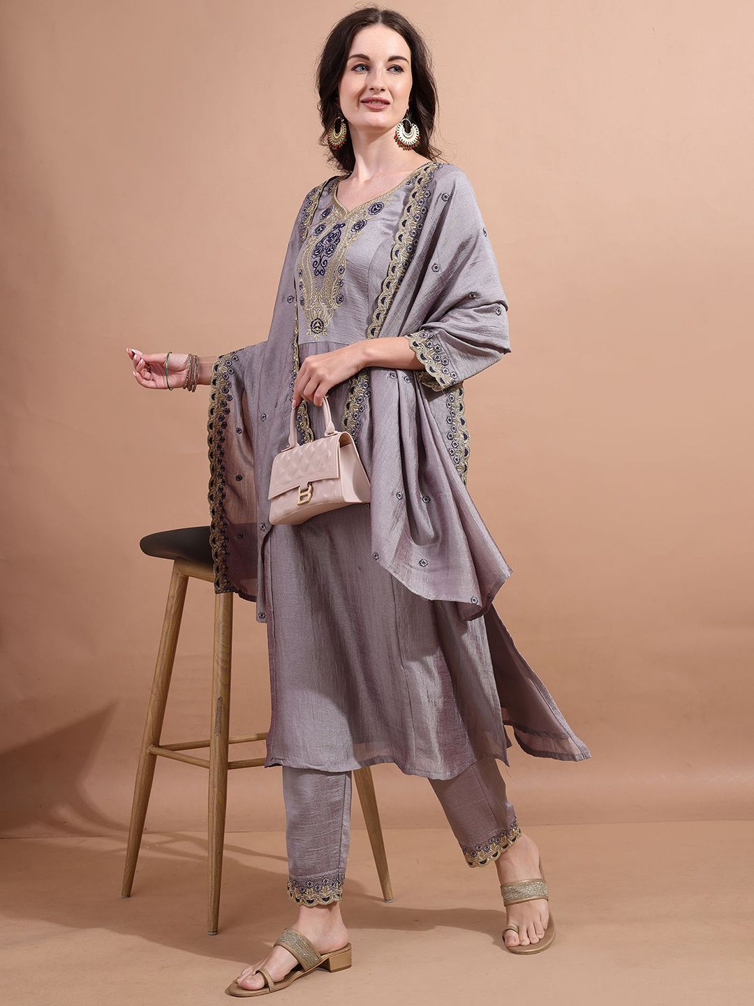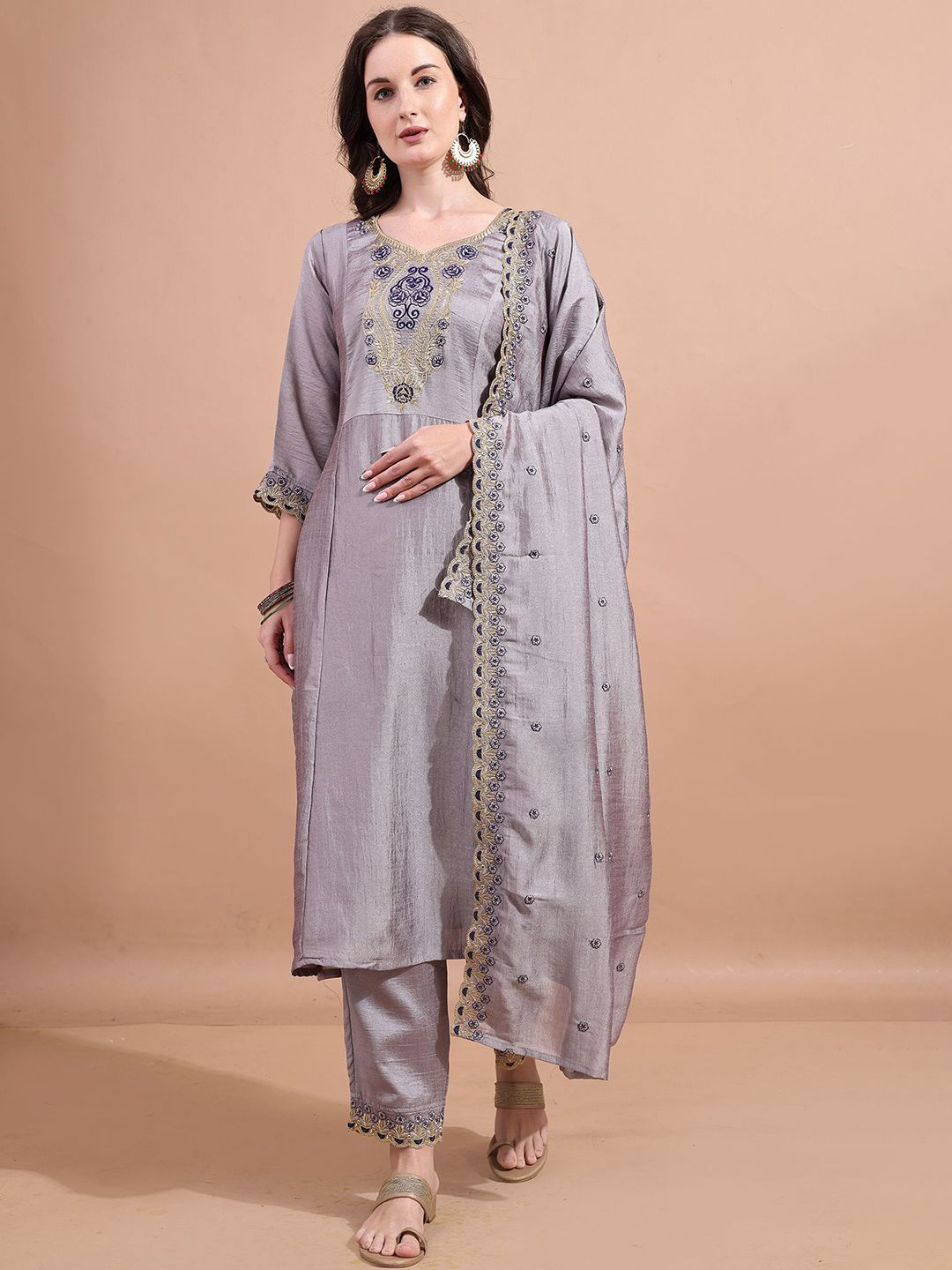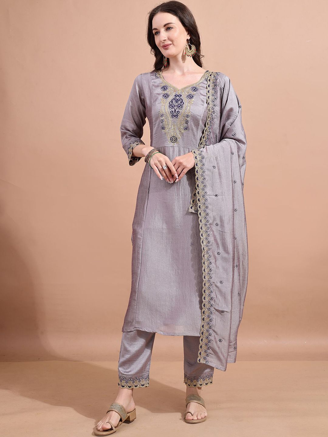 Granthva Fab Women Ethnic Motifs Embroidered A-Line Kurta with Trousers & Dupatta