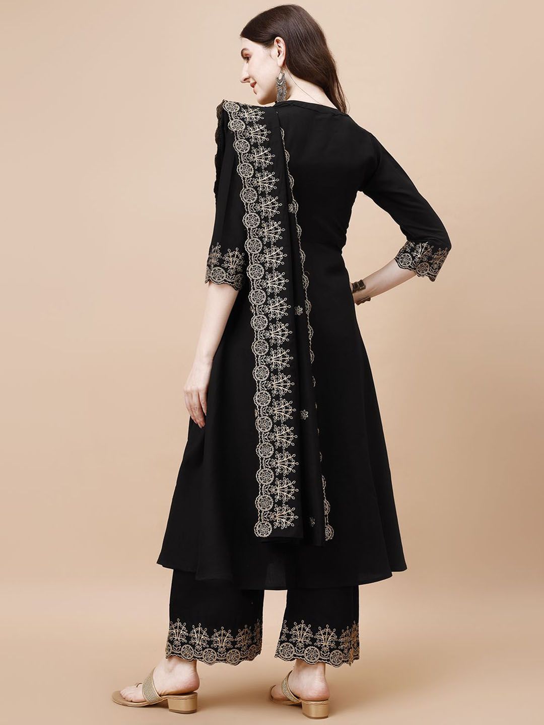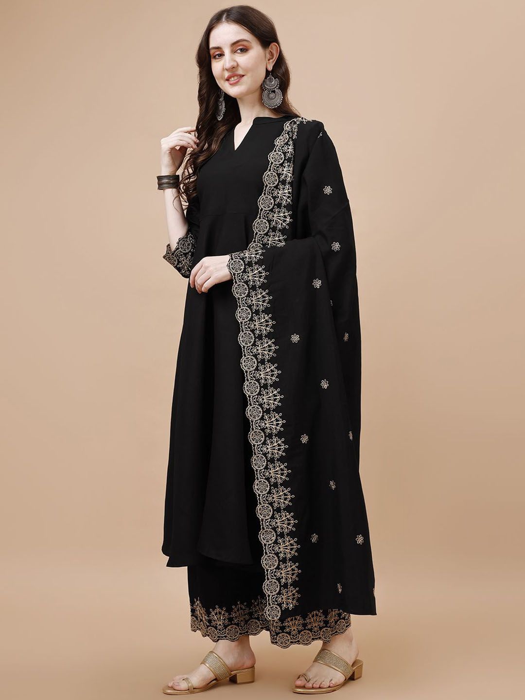 Granthva Fab Women Ethnic Motifs Embroidered Anarkali Kurta with Palazzos & Dupatta