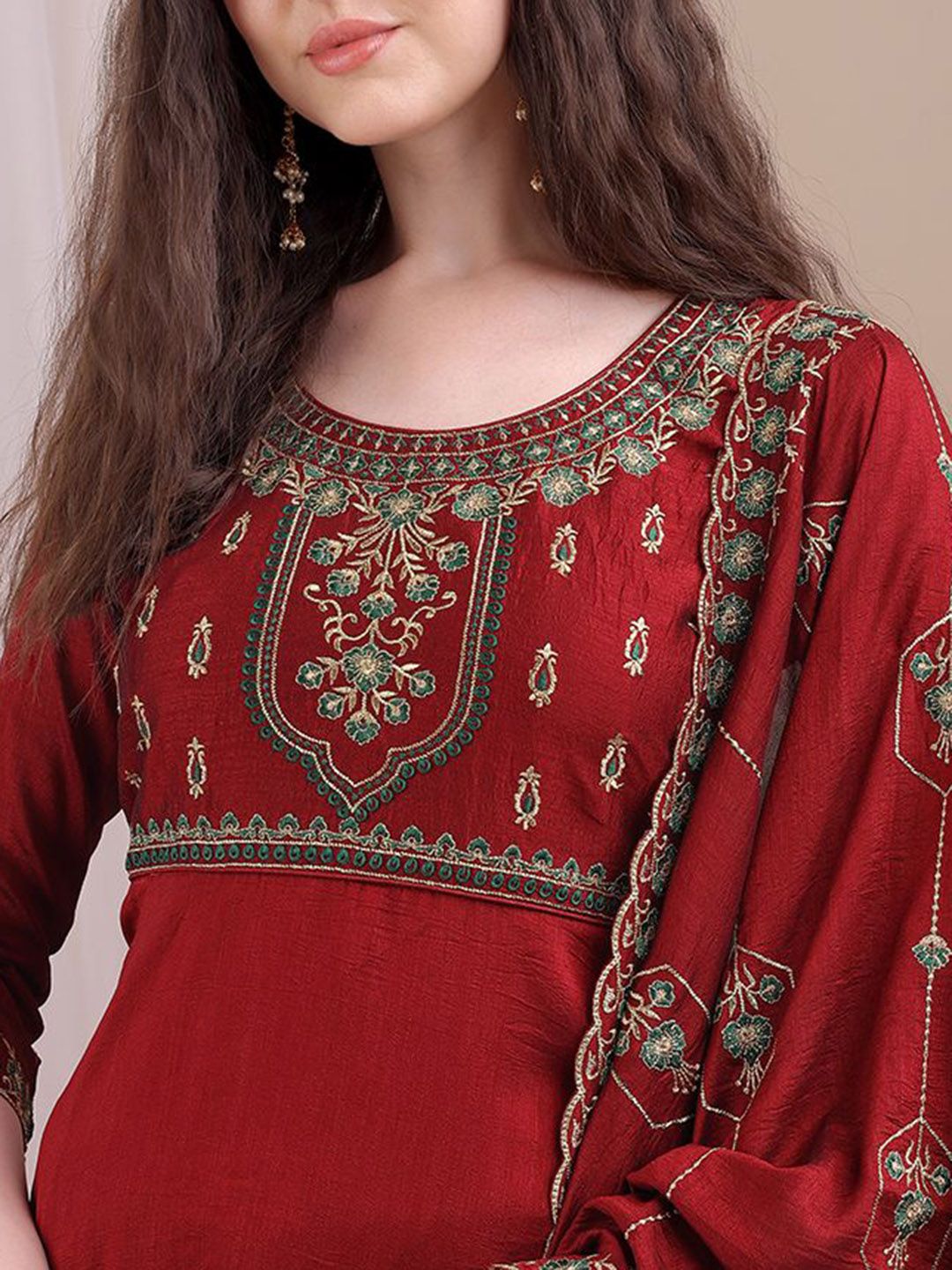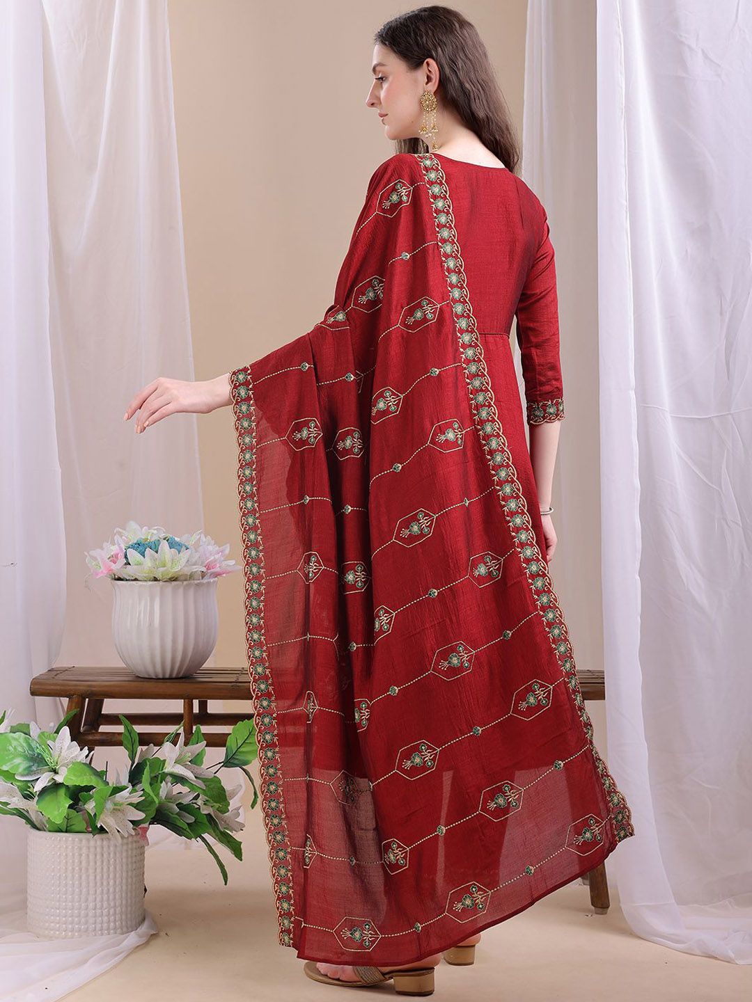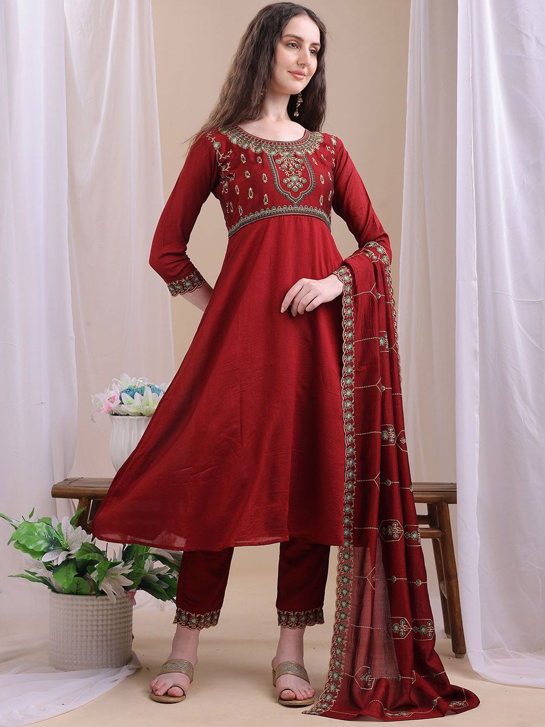 Granthva Fab Women Ethnic Motifs Embroidered Regular Thread Work Kurta Set