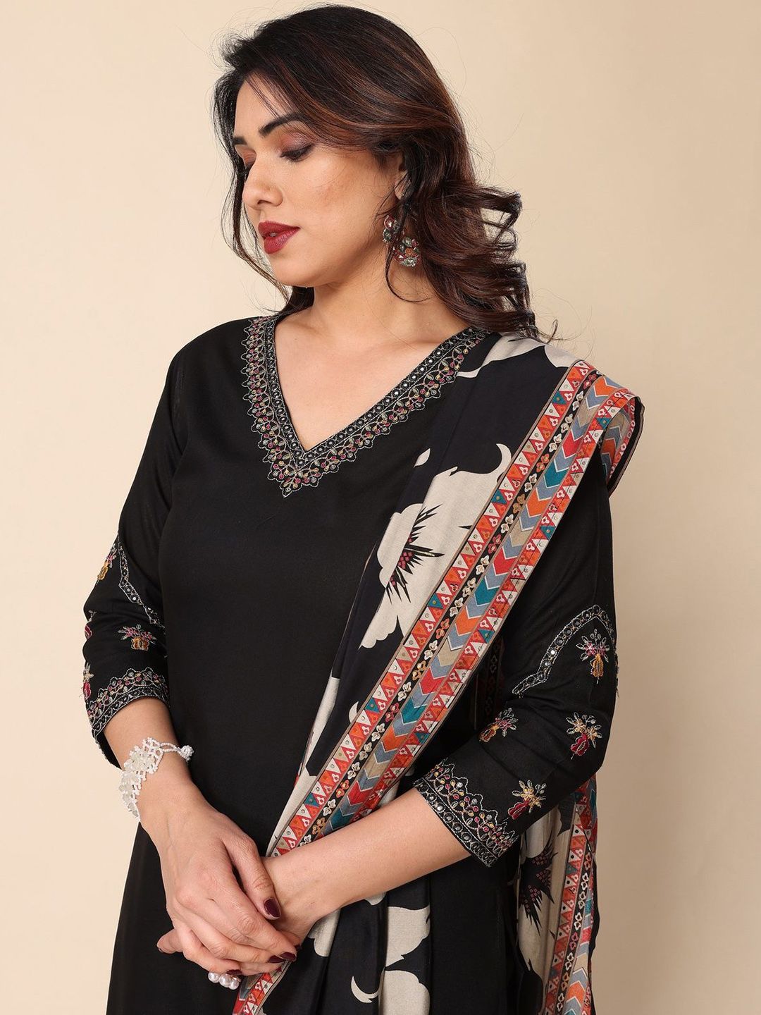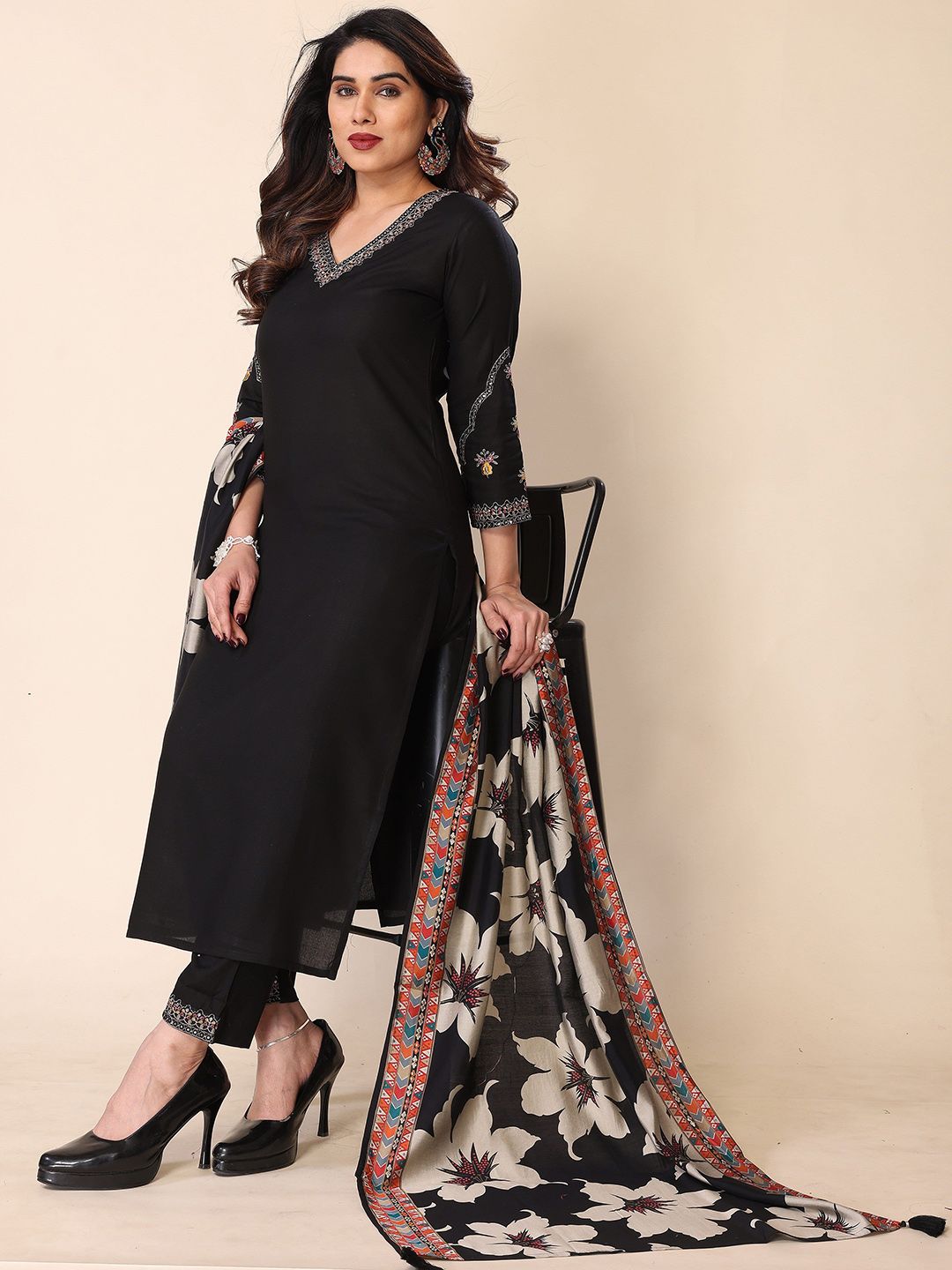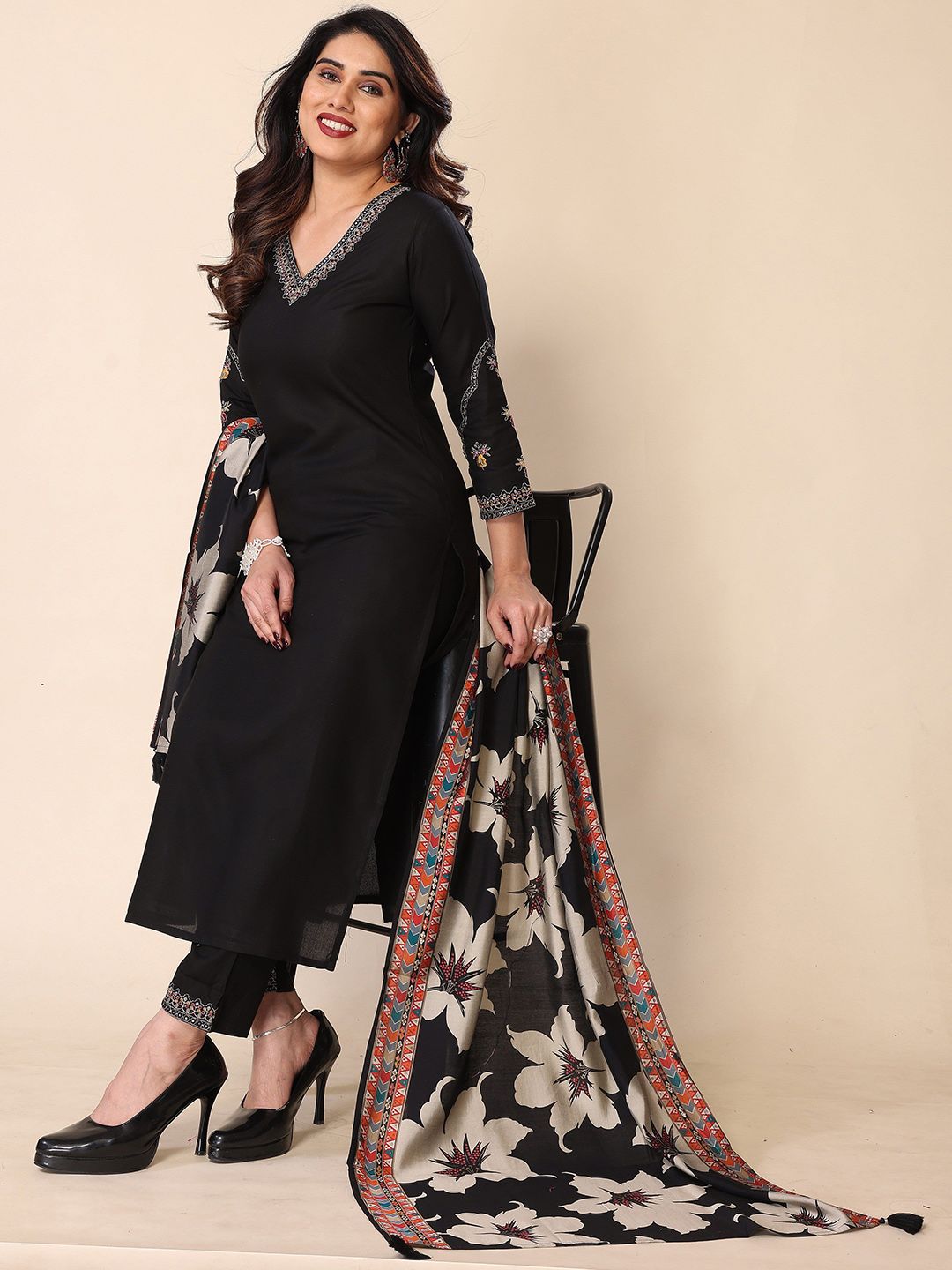 Growdamy Women Embroidered Kurta with Trousers & Dupatta