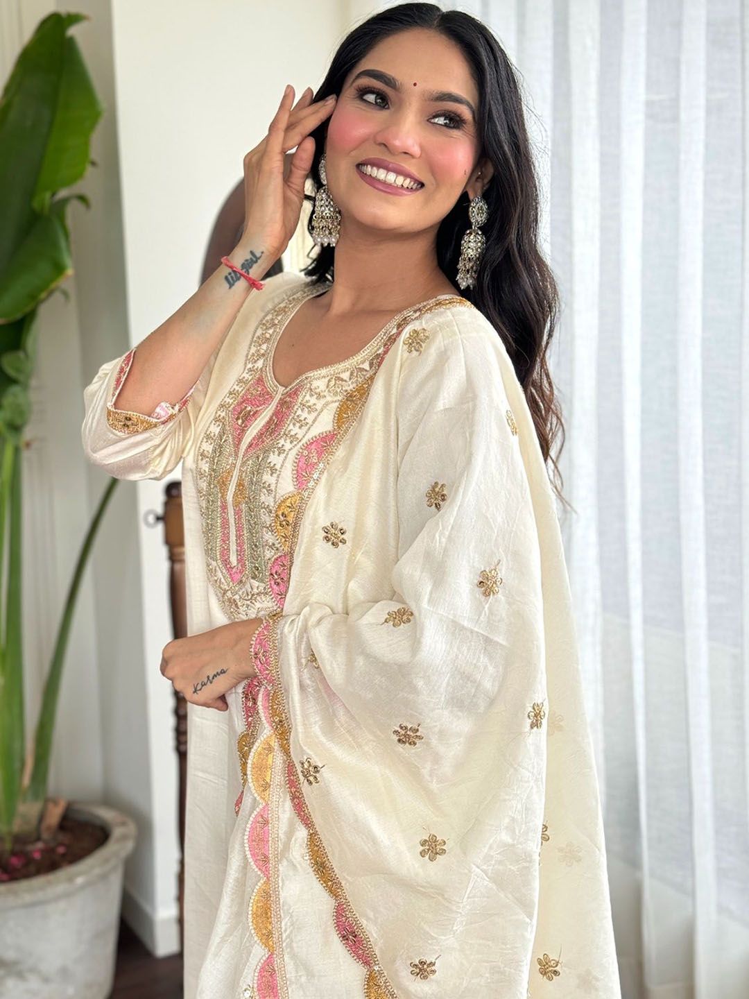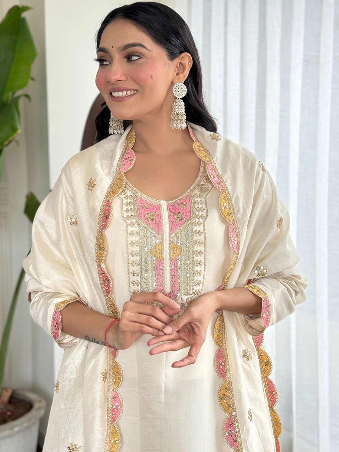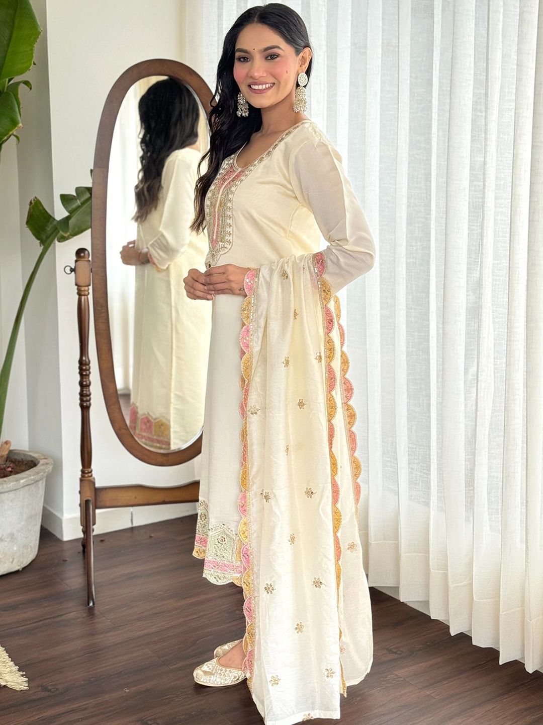 Growdamy Women Ethnic Motifs Embroidered Kurta with Trousers & Dupatta