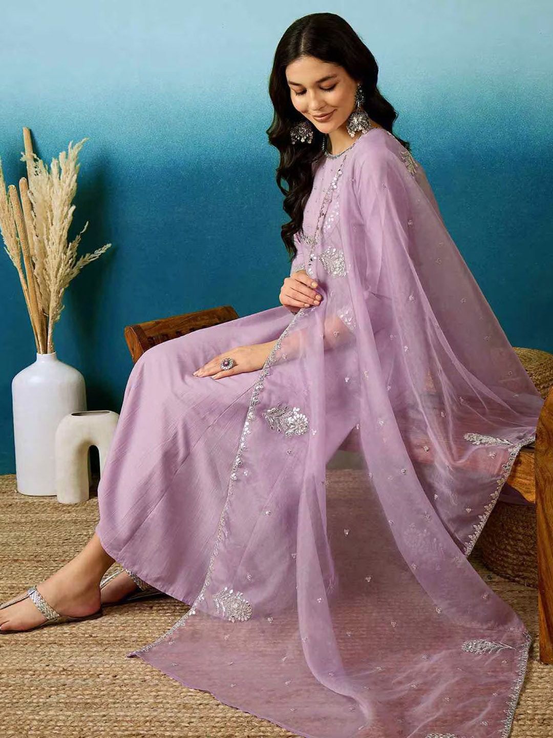 Growdamy Women Floral Embroidered Kurta with Trousers & Dupatta