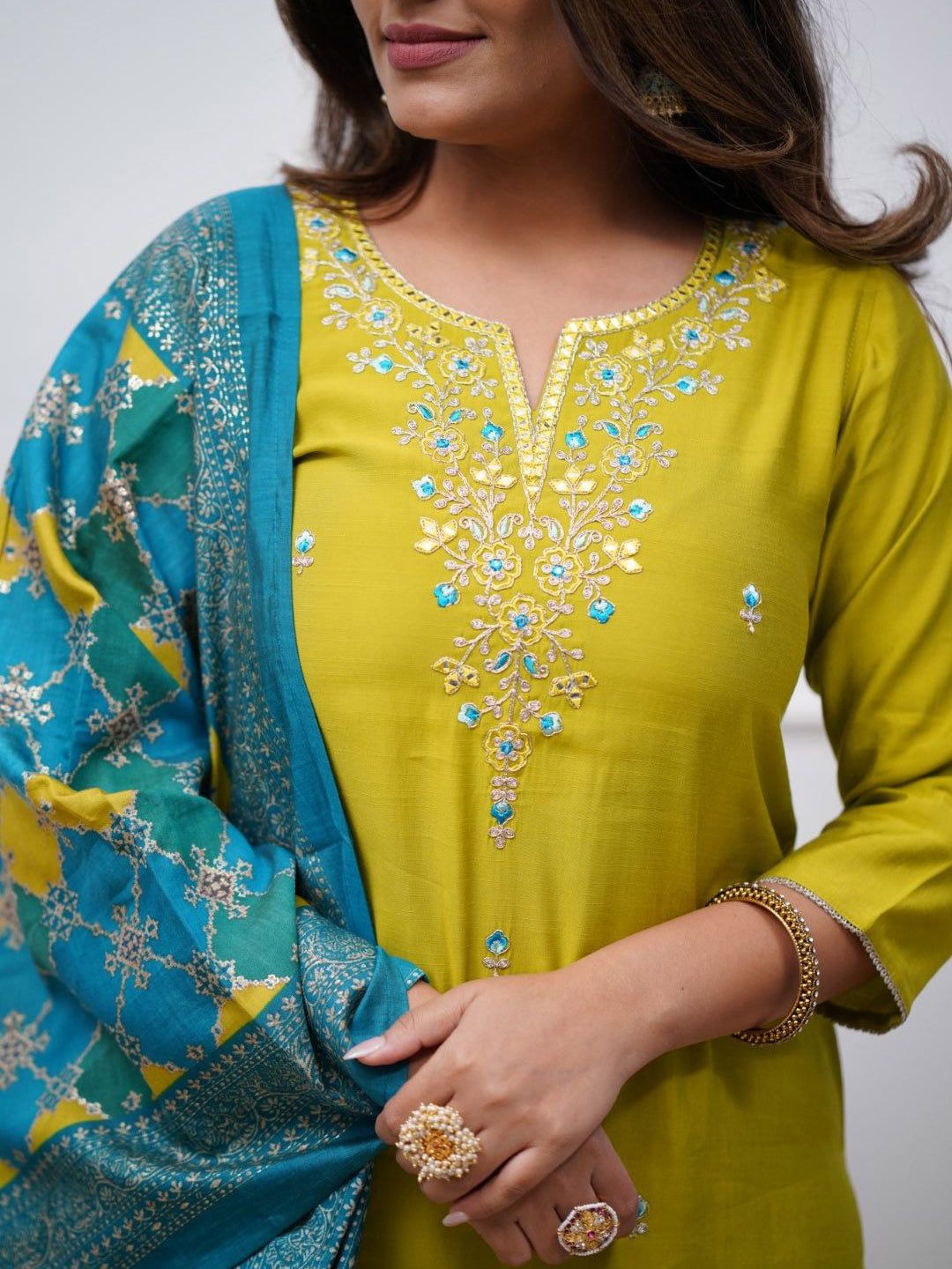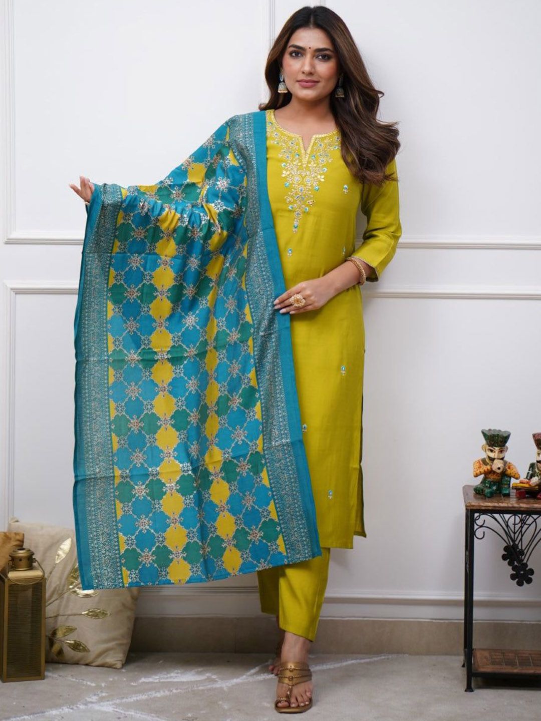 Buy this stylish Growdamy Women Floral Embroidered Regular Chanderi Silk Kurta with Trousers & Dupatta at Marincart Nepal. This product offers great quality and value. Perfect for those looking for the latest trends in fashion. Get yours now at unbeatable prices.