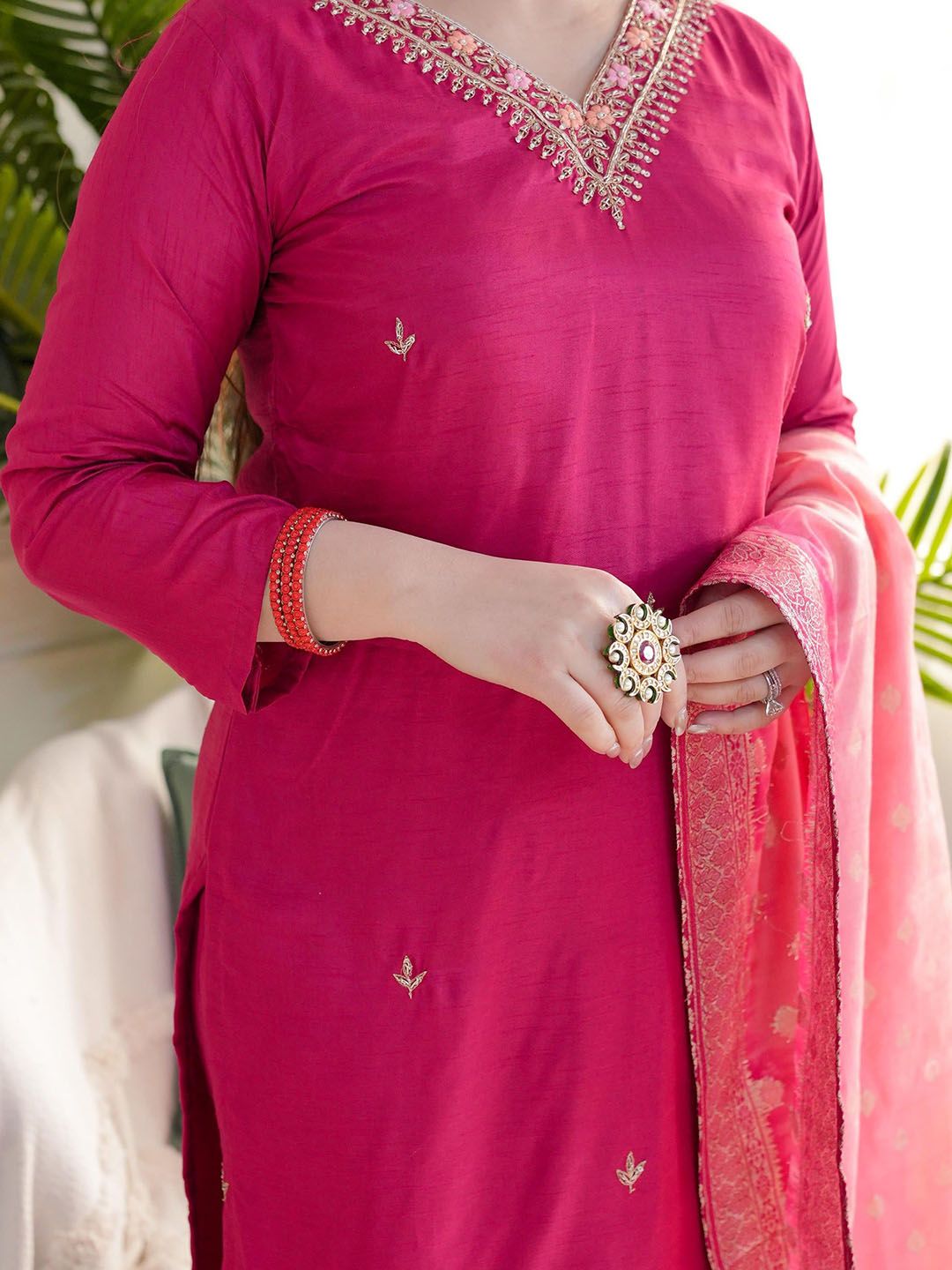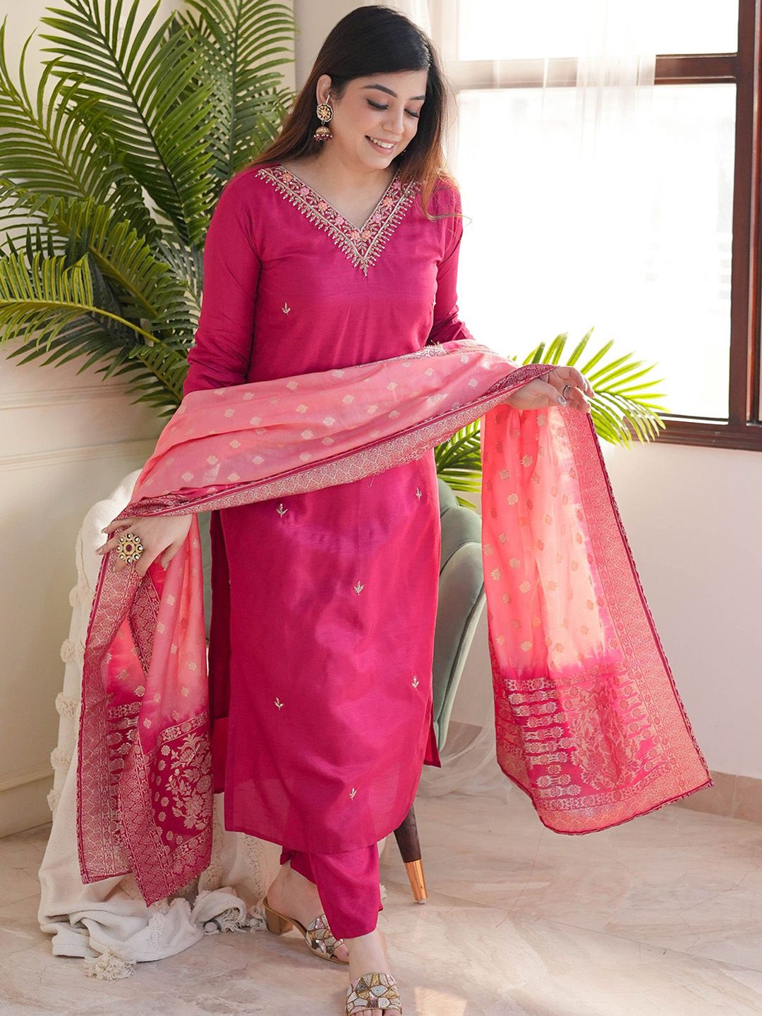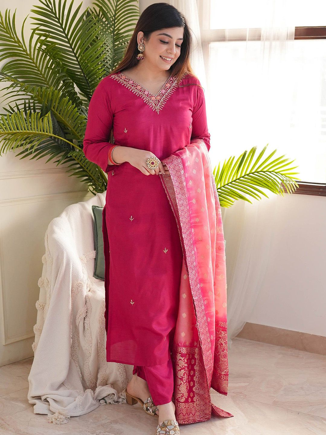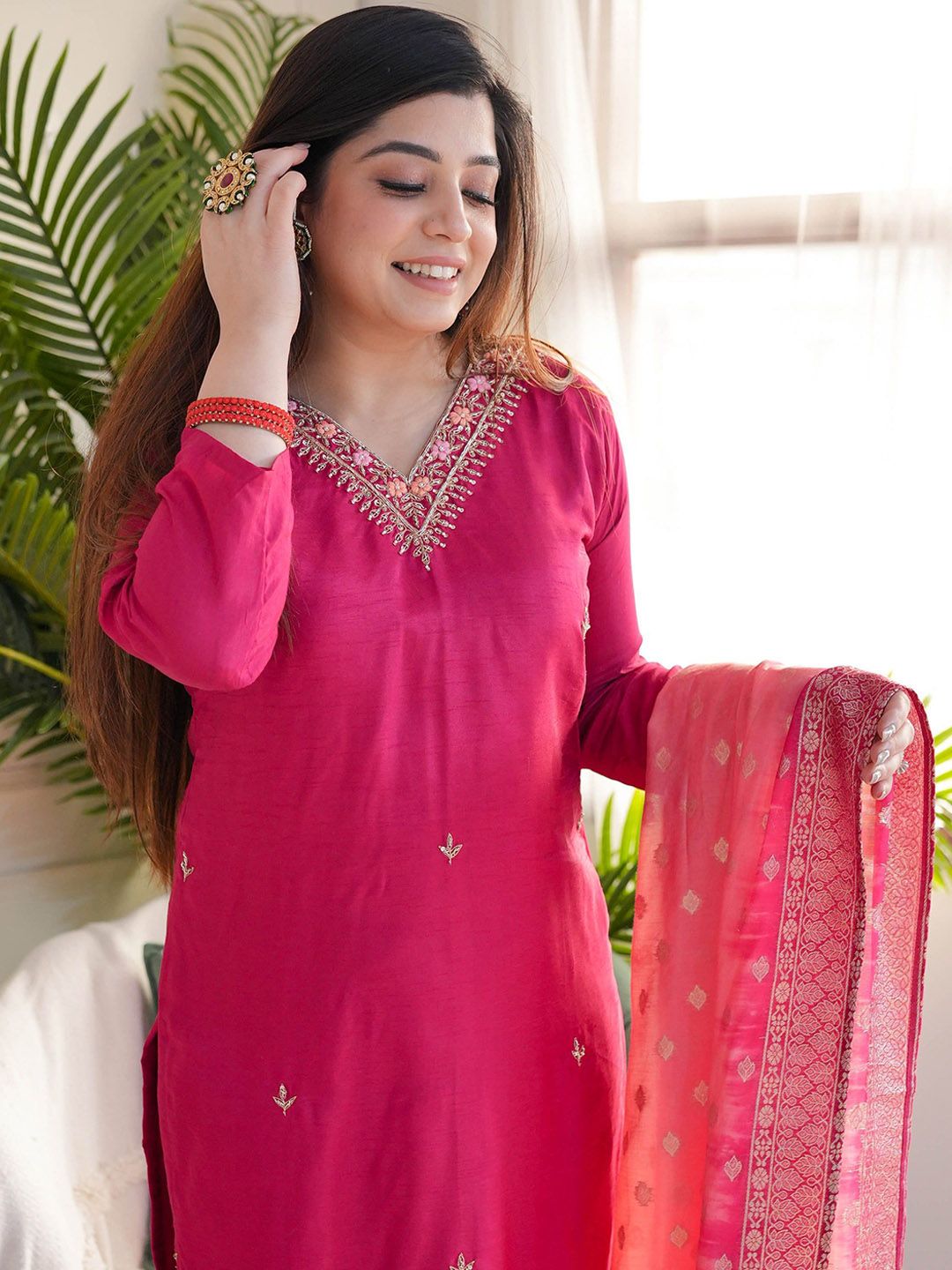 Buy this stylish Growdamy Women Floral Embroidered Thread Work Chanderi Silk Kurta with Trousers & Dupatta at Marincart Nepal. This product offers great quality and value. Perfect for those looking for the latest trends in fashion. Get yours now at unbeatable prices.