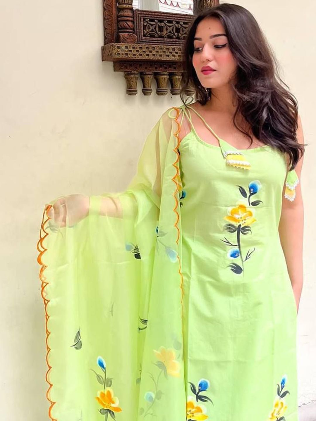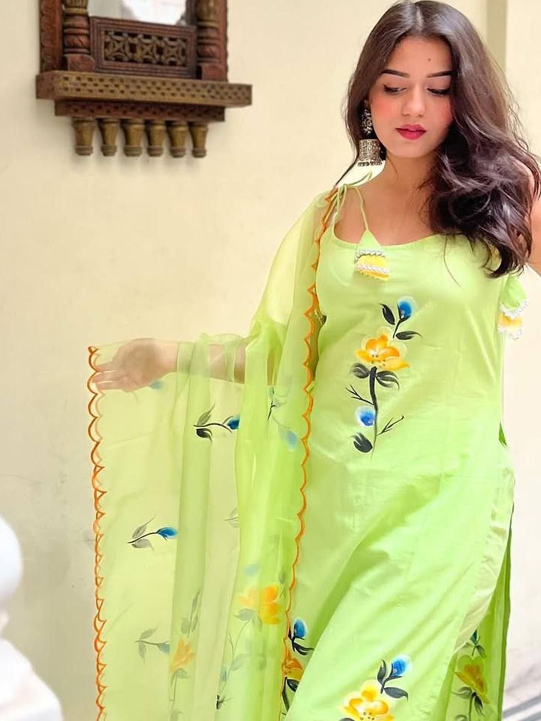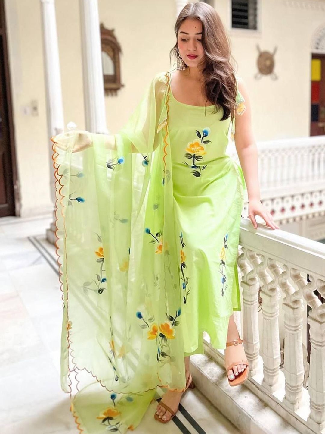 Growdamy Women Floral Printed Regular Kurta Set With Dupatta