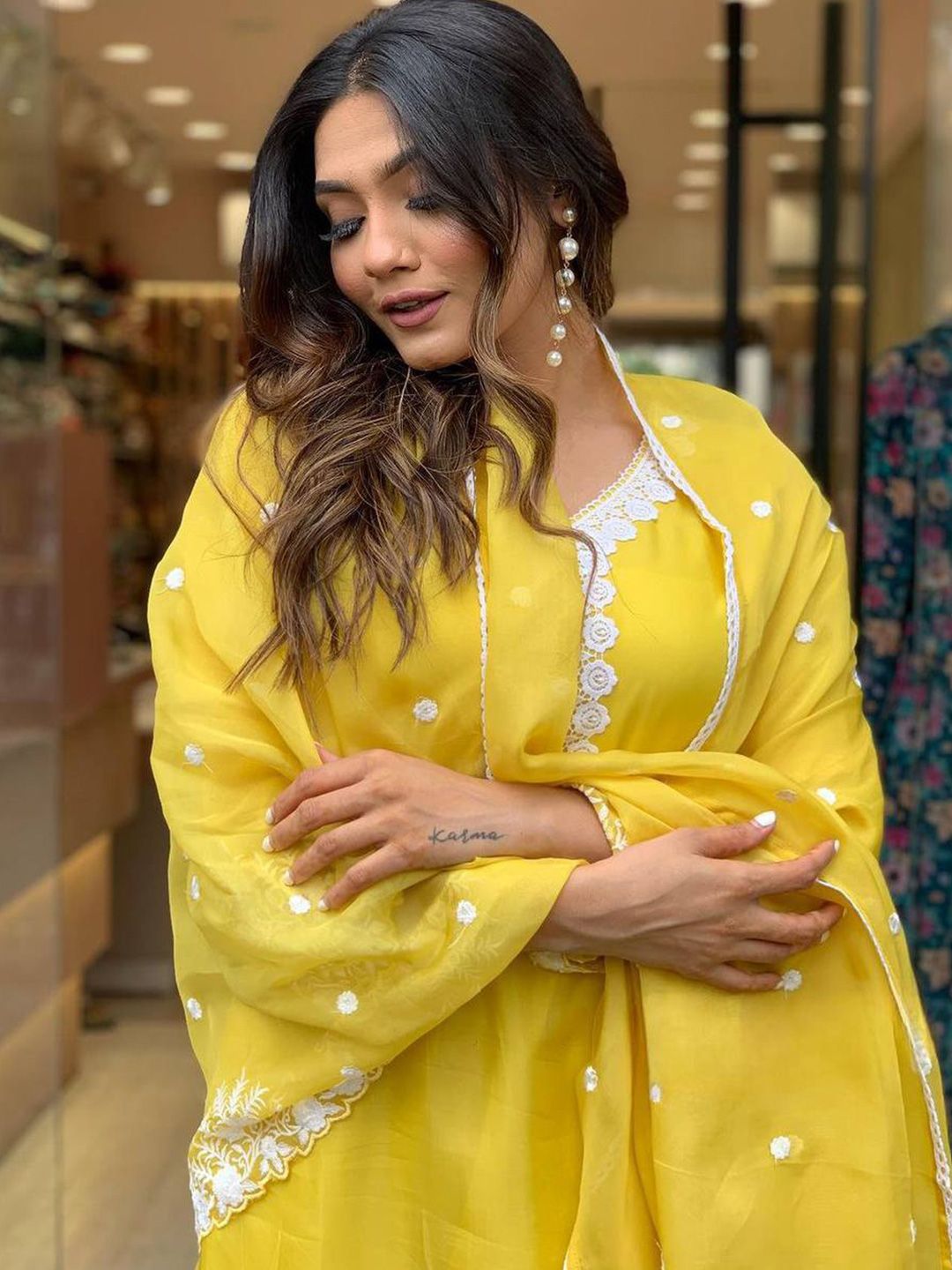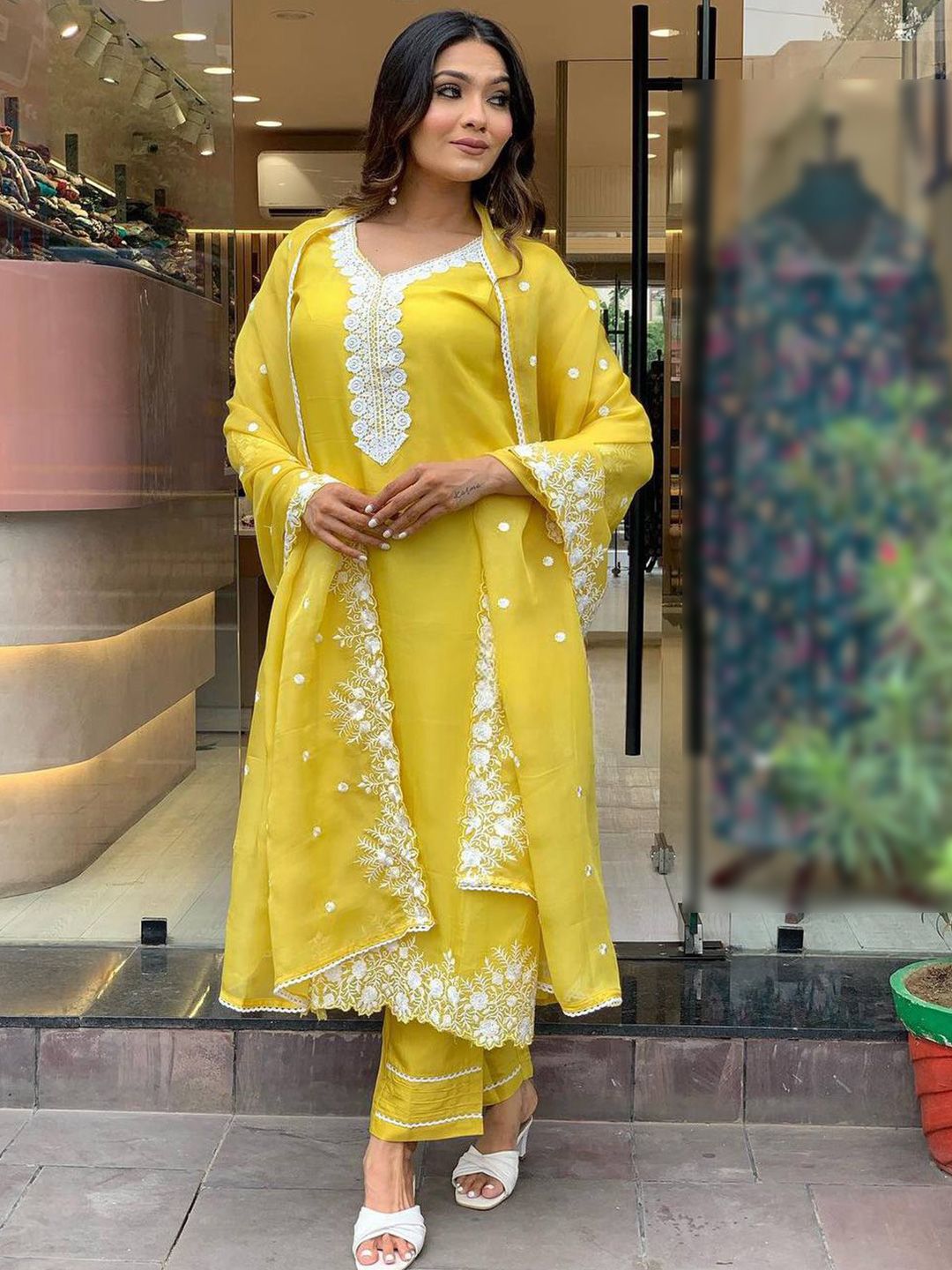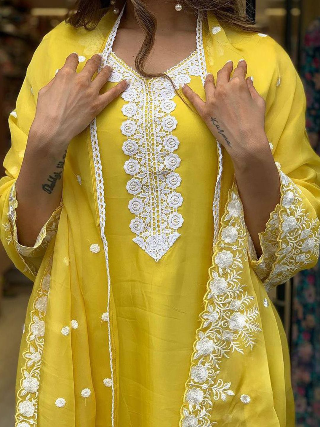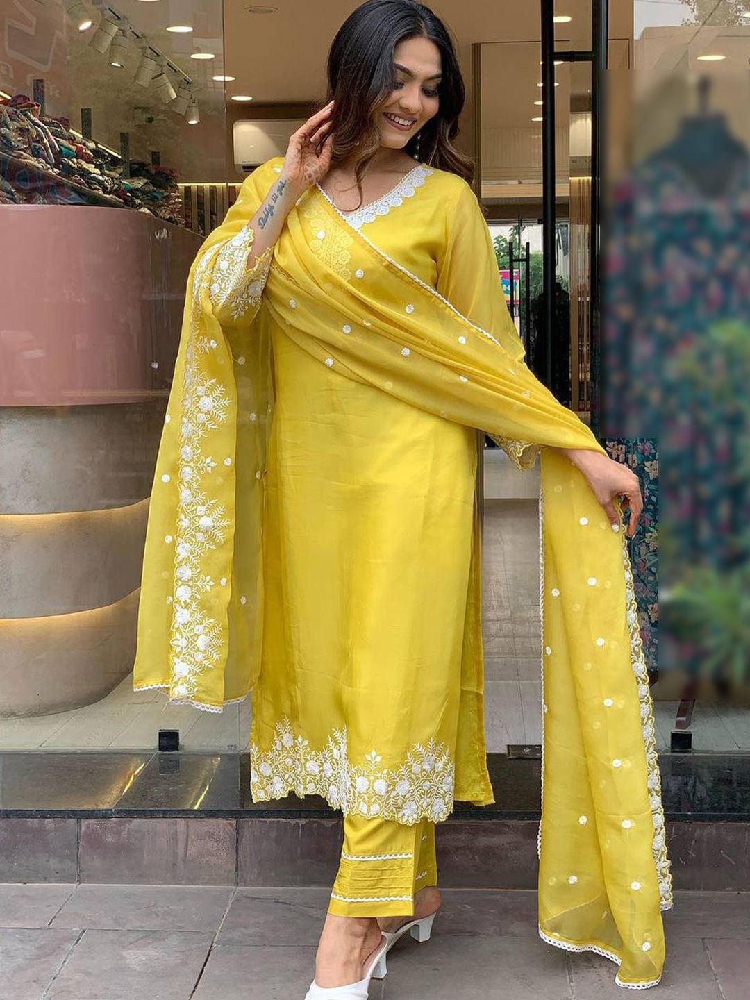 Growdamy Women Solid Embroidered Kurta with Trousers & Dupatta