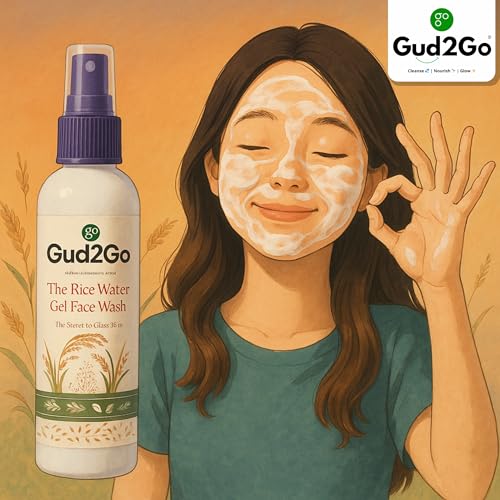 Gud2Go Rice Water Gel Face Wash for Glass Skin Glow | Korean Skincare for Men & Women | Gentle Cleanser with Rice Water, Aloe Vera, Green Tea, Niacinamide, Vitamin B3 | Fights Acne, Pimples, Dark Spot