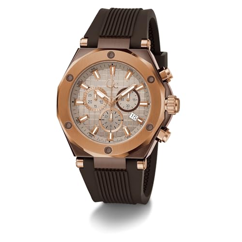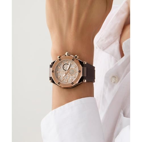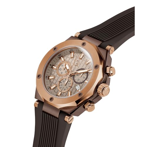 GUESS Collection Legacy Analog Watch for Man with Beige Round Dial & Brown Silicone Strap Band Water Resistant Men's Wrist Watches - Z18007G1