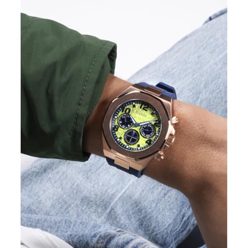 GUESS Men's 46mm Watch - Black Strap Black Dial Two-Tone Case