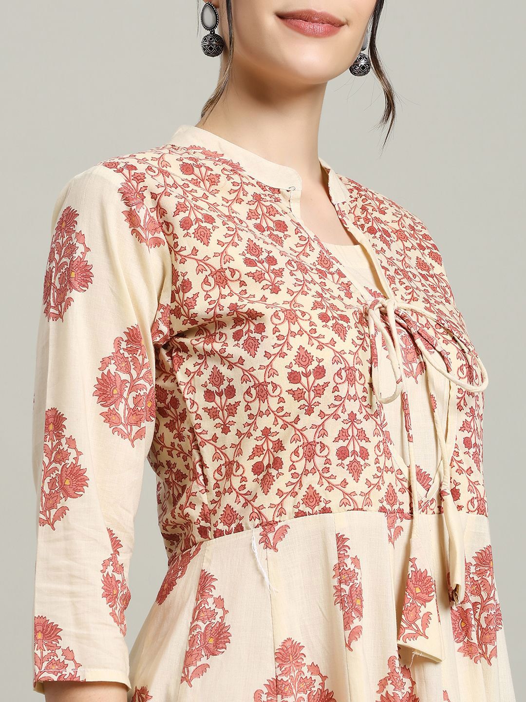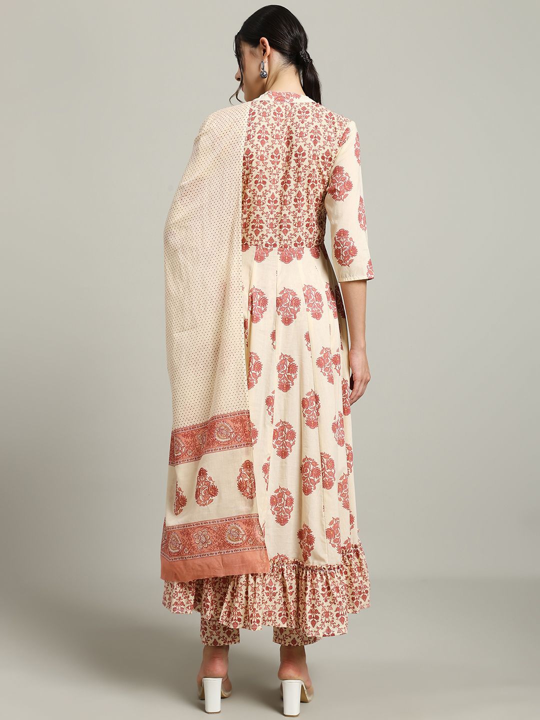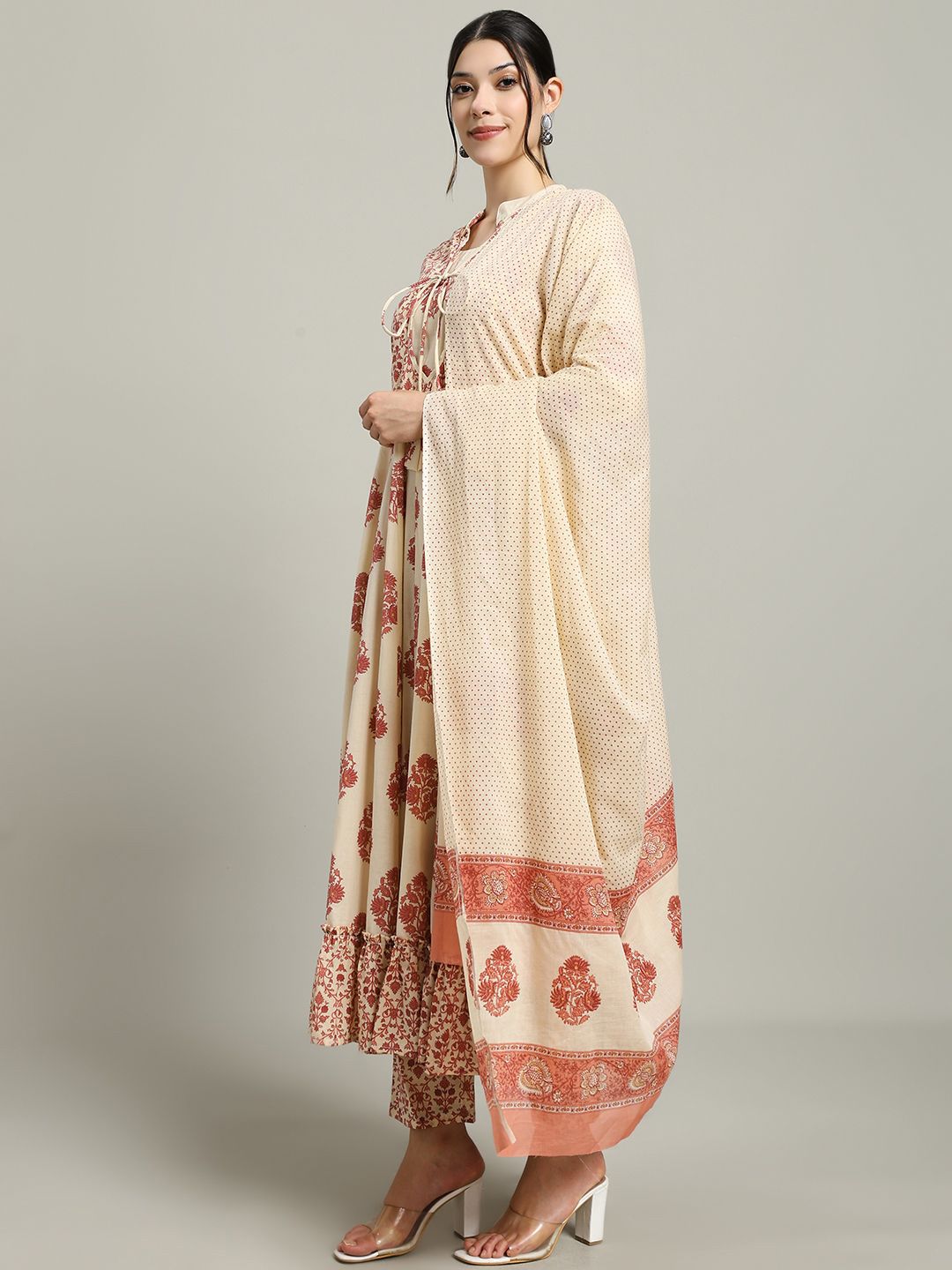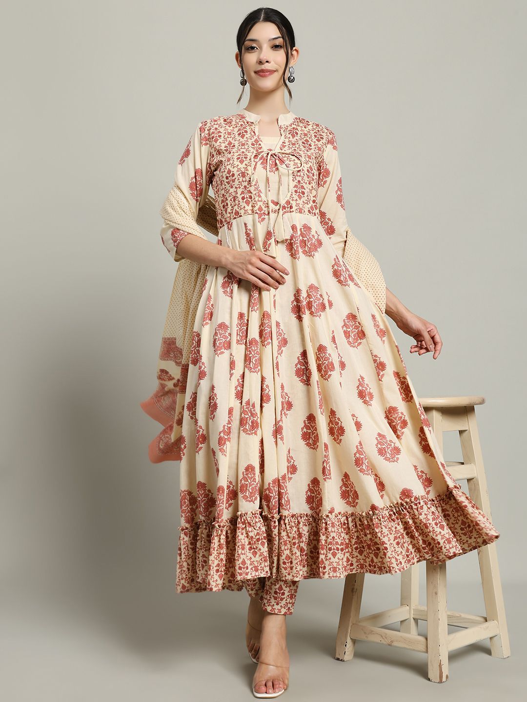 Gujari Floral Printed Pure Cotton Anarkali Kurta With Trousers & Dupatta