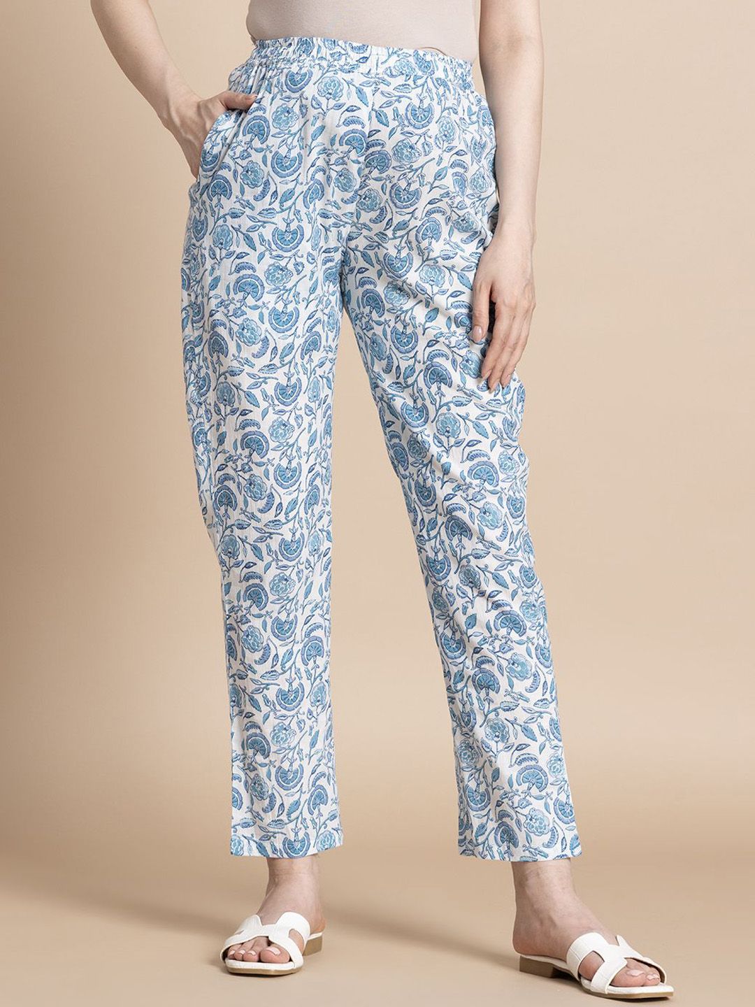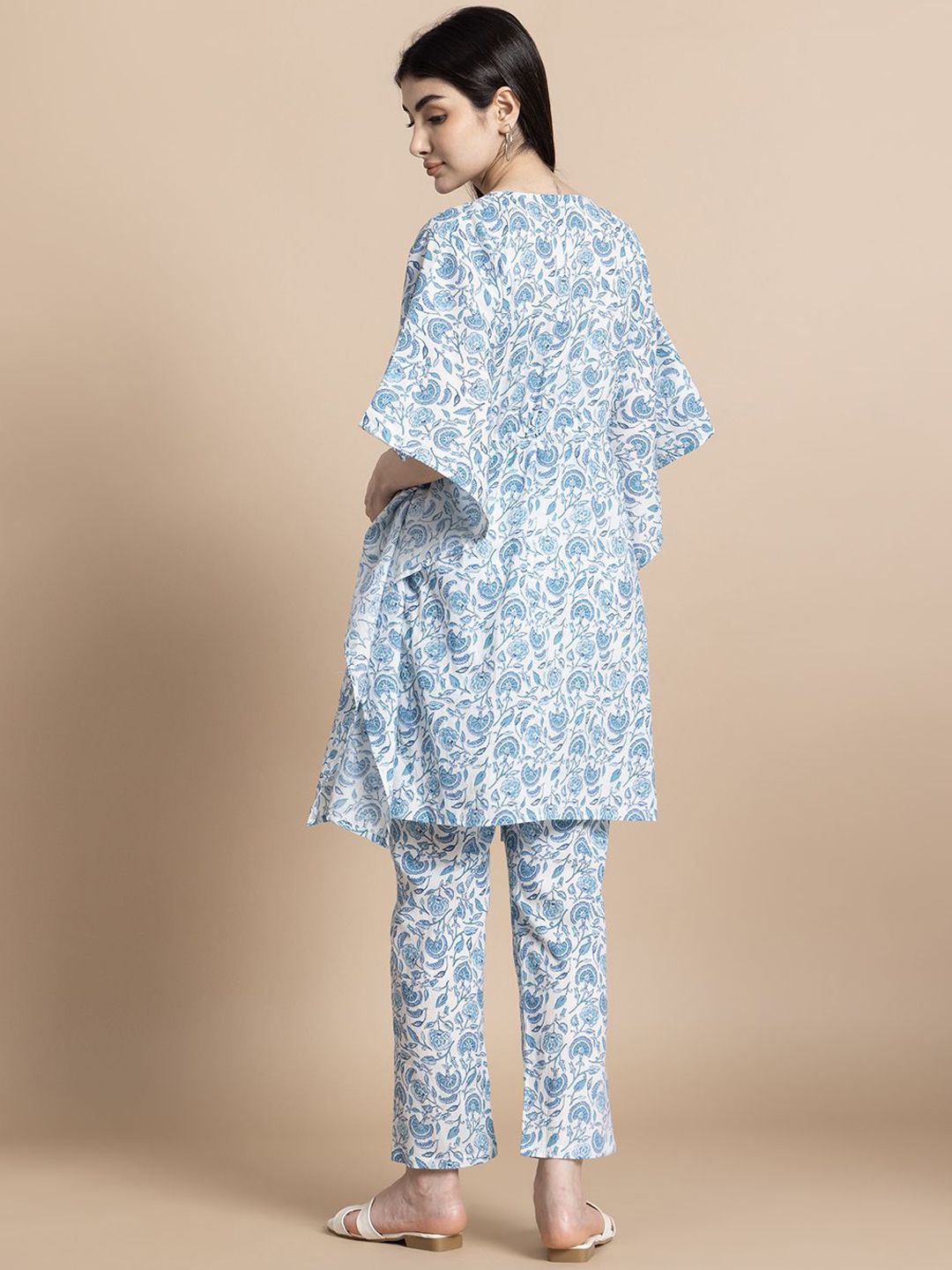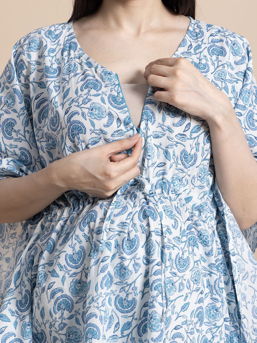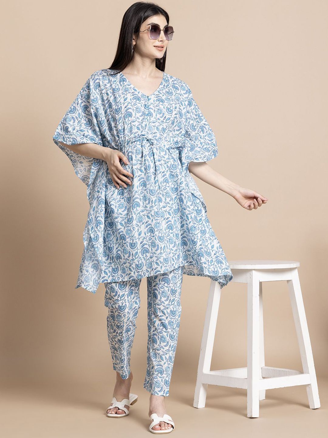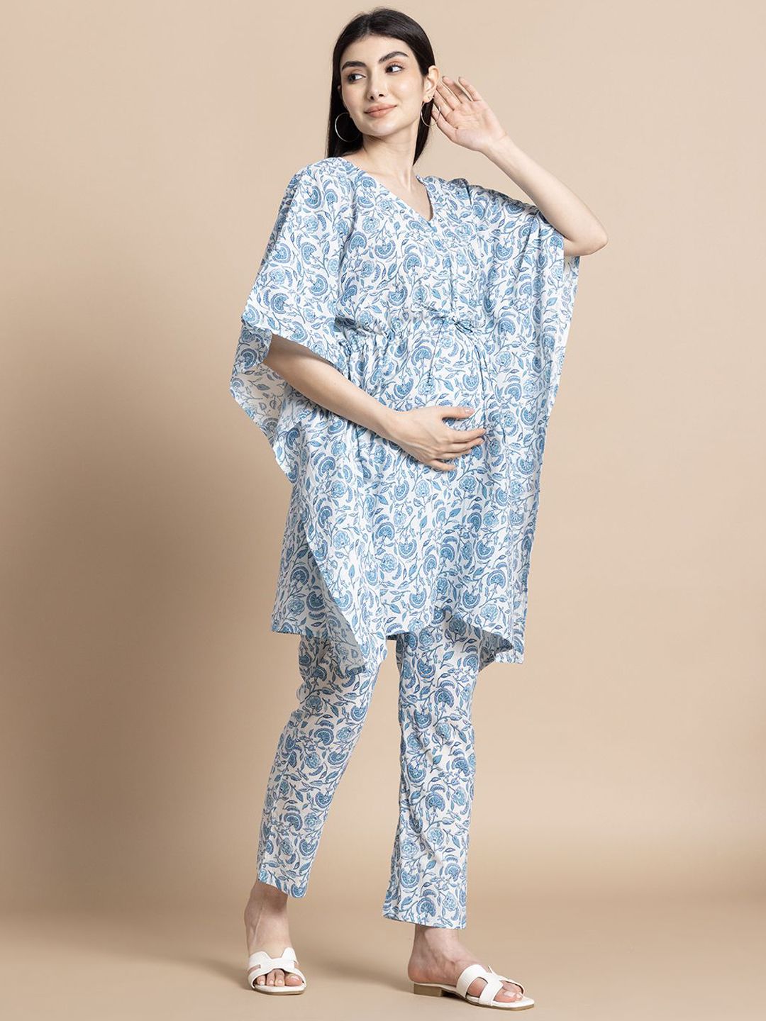 Gujari Women Maternity Floral Printed V-Neck Pure Cotton Kaftan Kurta with Trousers