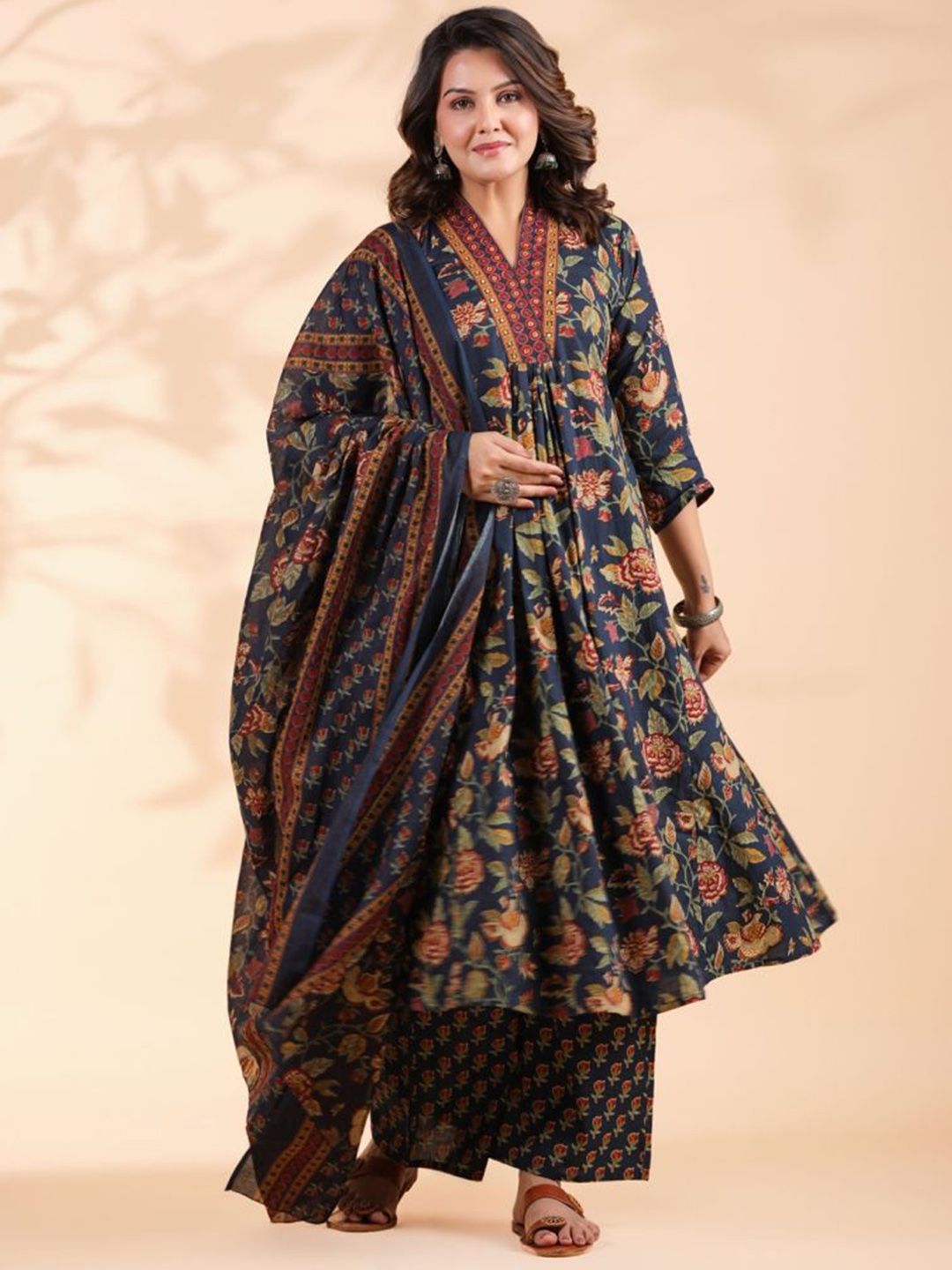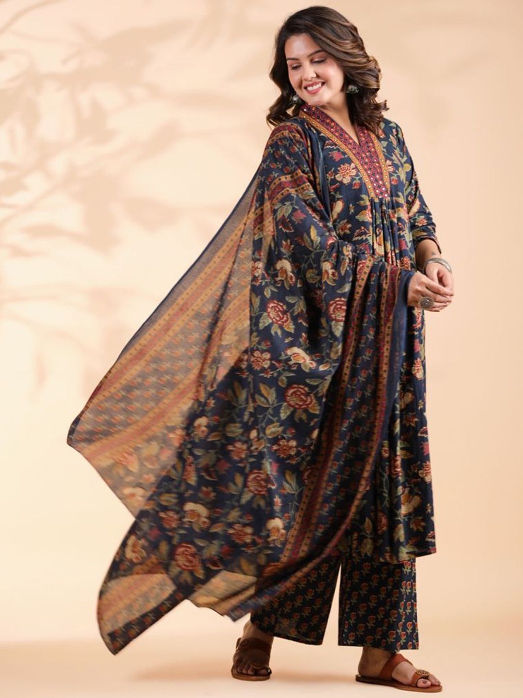 GULMEHAK Women Mirror Work Pure Cotton Kurta with Palazzos & Dupatta