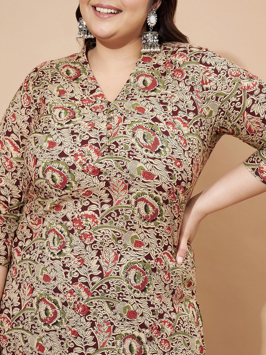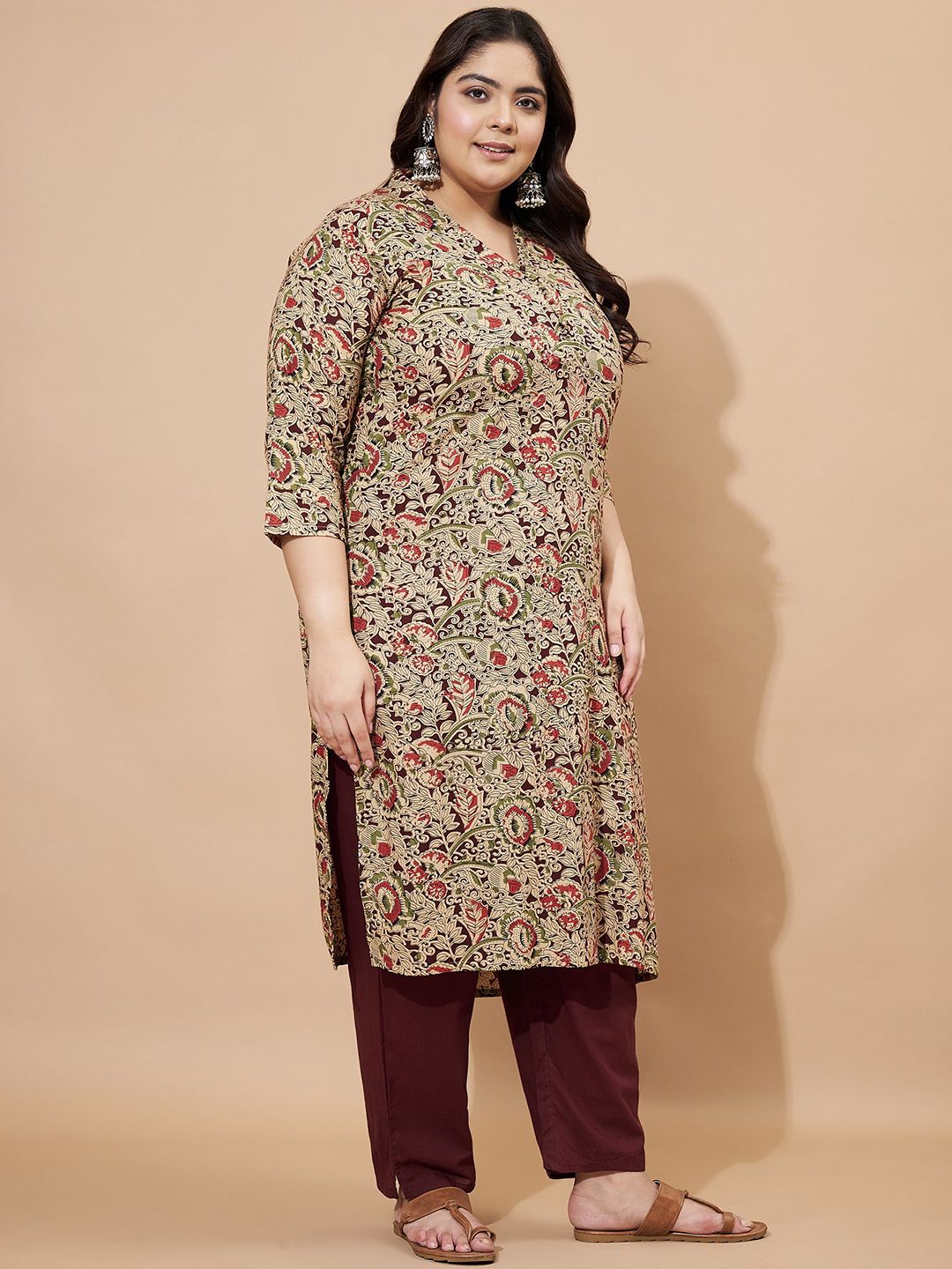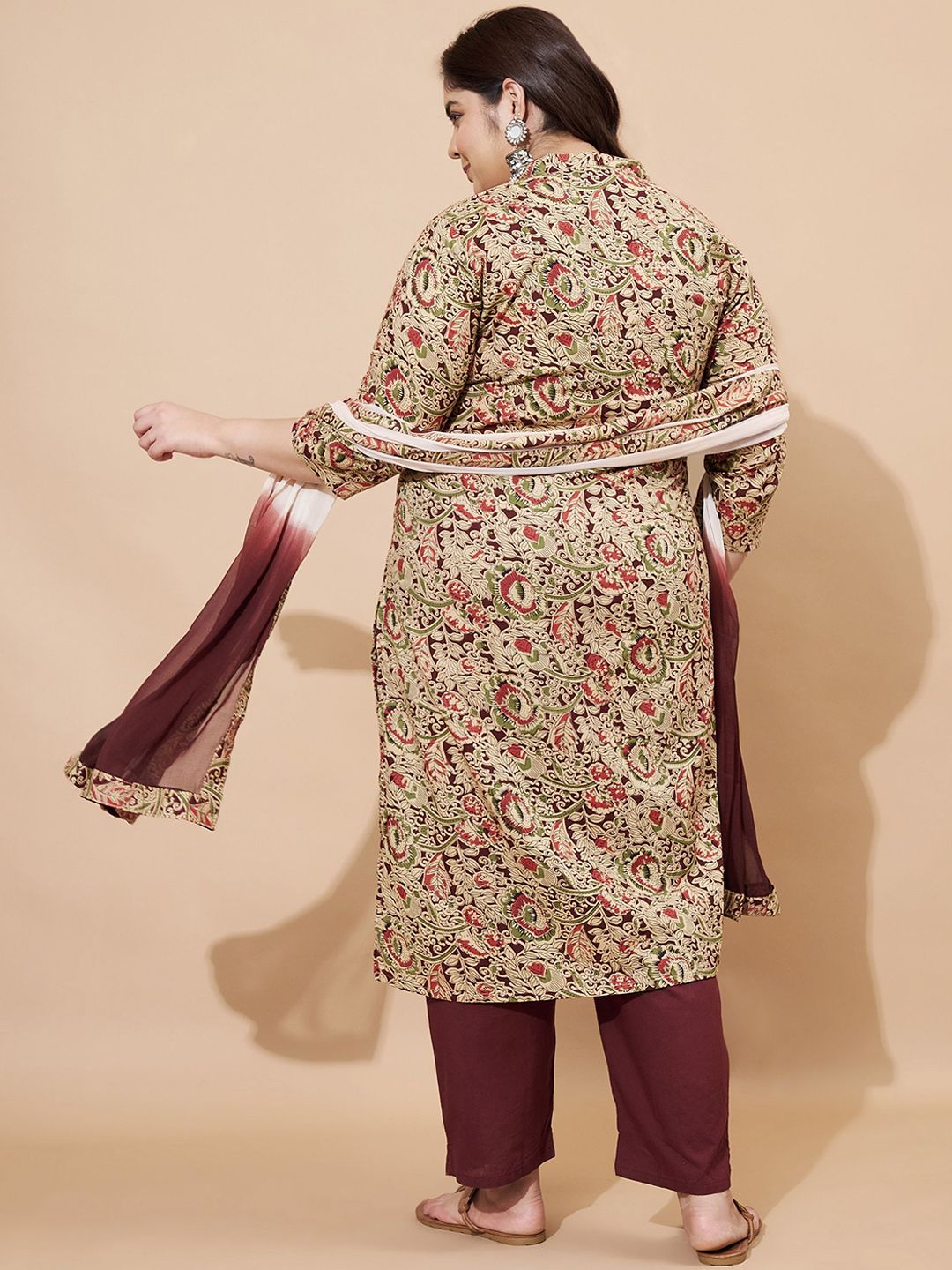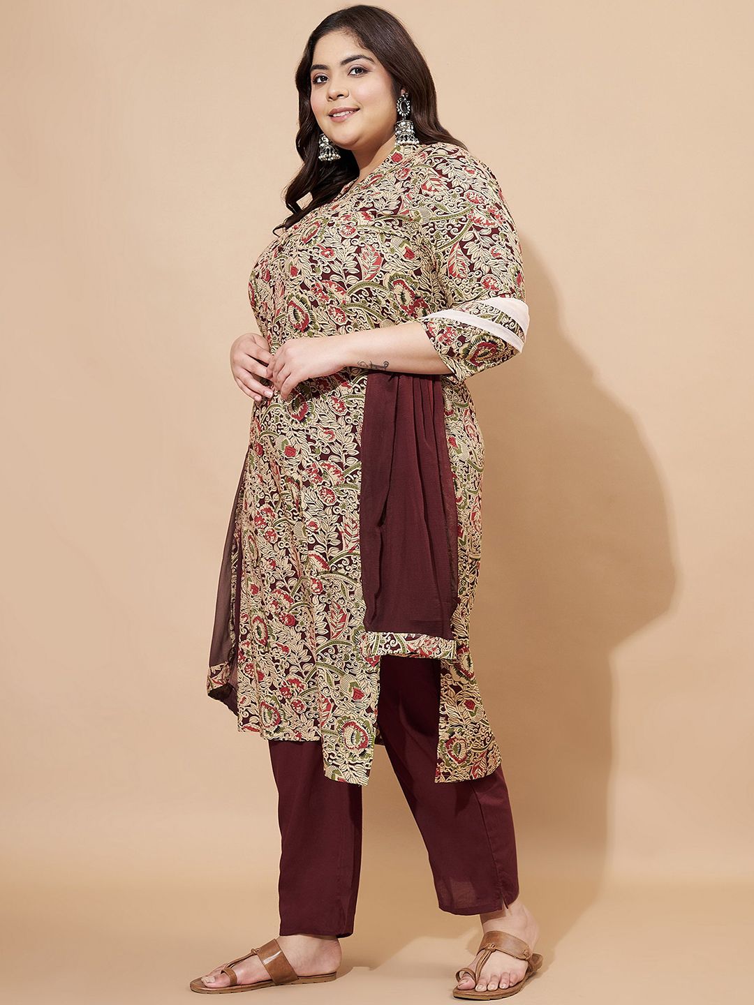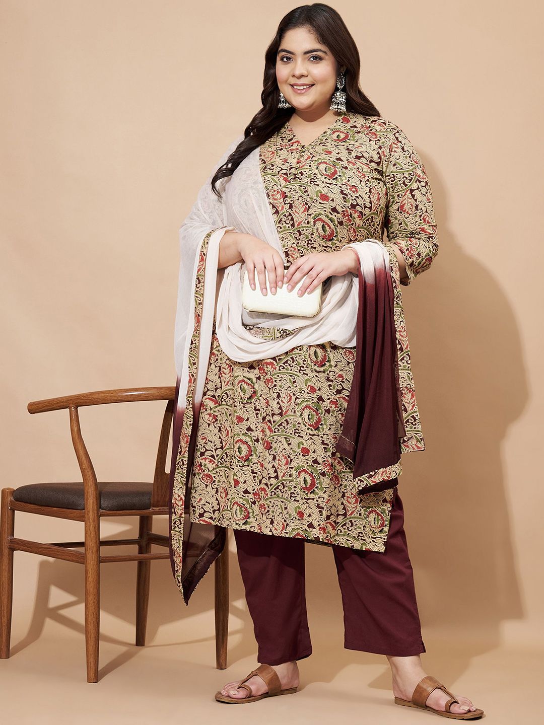 GULMEHAK Women Plus Size Ethnic Motifs Printed Pure Cotton Kurta with Trouser & Dupatta