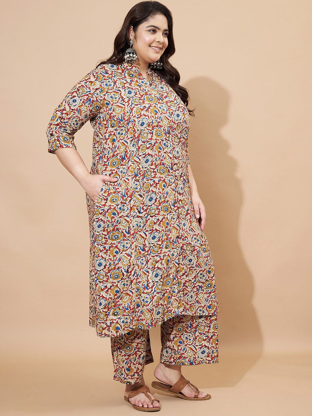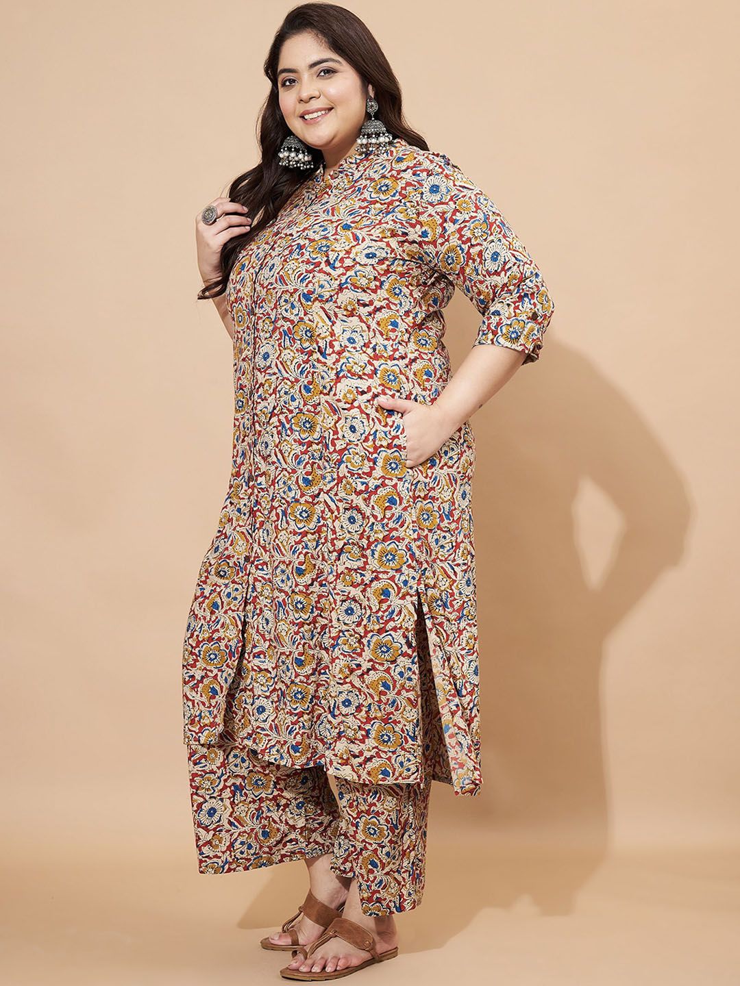 GULMEHAK Women Plus Size Floral Printed Kurta with Palazzo