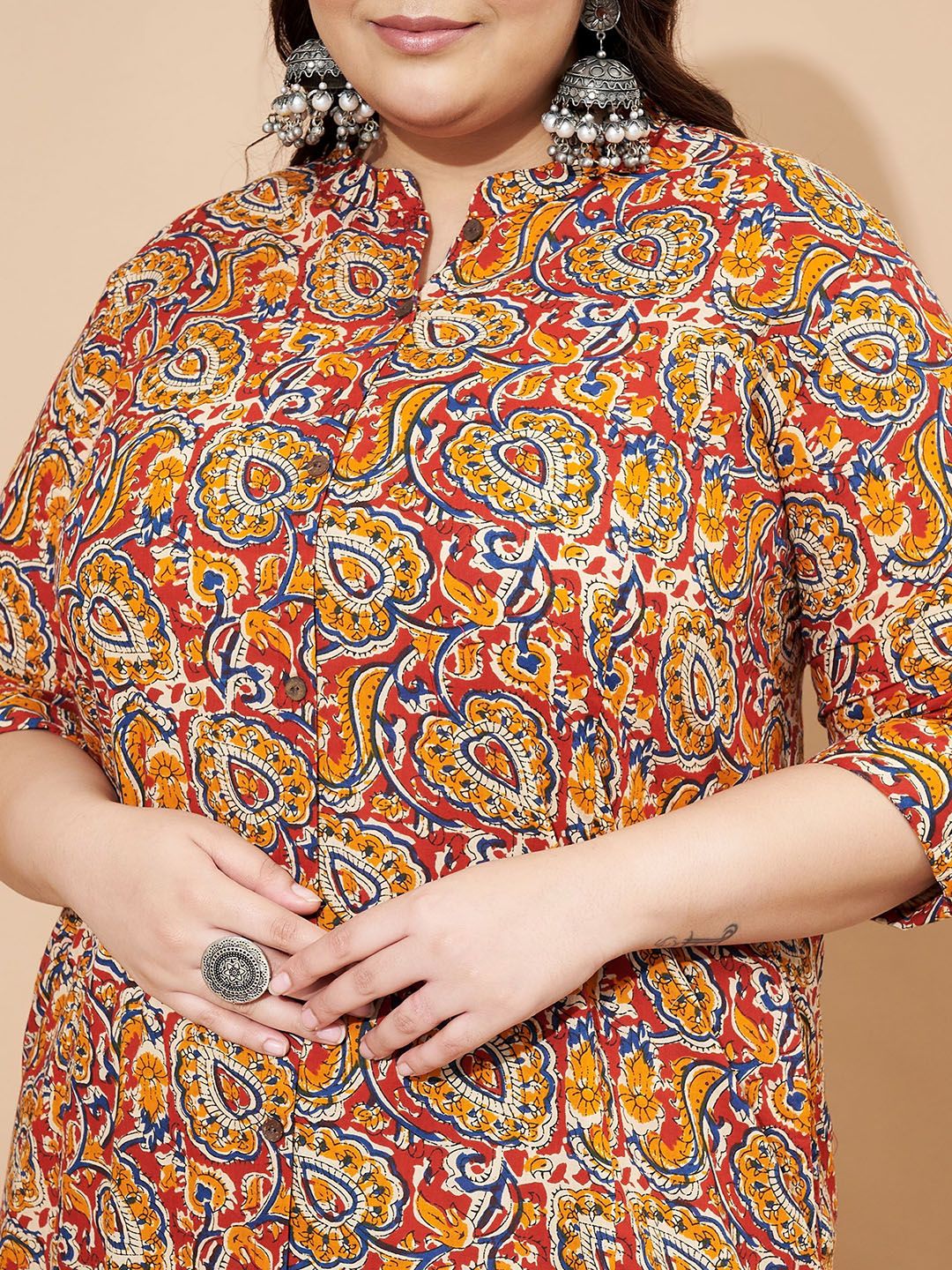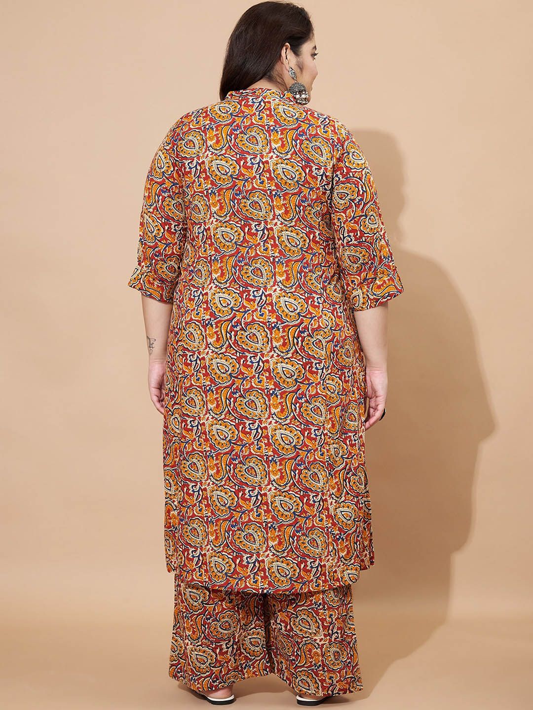 GULMEHAK Women Plus Size Paisley Printed Pure Cotton Kurta with Palazzo