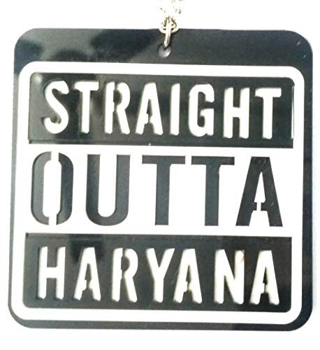 GXYS Double Side Straight Outta Haryana Rear View Mirror Interior for Car Hanging (Pack of 1)