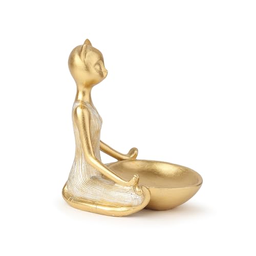 Stylish Design: This Yoga Cat Statue brings a peaceful and elegant touch to your home decor for living room. It’s an ideal showpiece for home decor living room, perfect for any home or office. Versatile Use: Perfect for decoration items for living room, this Yoga Cat Statue can be displayed in your home decor items for hall, adding a calming vibe to any space, or as office desk decorative items. Perfect Gift: This Yoga Cat Statue makes an ideal gift for house warming ceremony, wedding gift for couples, gifts for house warming ceremony, or showpiece for gift, adding elegance and peace to any room. Quality Materials: Made from high-quality polypropylene, this showpiece is durable and designed to last. It adds lasting beauty to your home decoration items for living room or home decor for living room. Package Content & Dimensions: This package contains one cat statue. It makes a perfect show piece for living room or gift for house warming ceremony, with ideal dimensions for any space. (Dimensions: L13 x W14 x H16 cm) Maintenance & Easy Care: The Yoga Cat Statue is easy to clean and maintain, wipe them with a damp cloth, ensuring your showpieces for home decor living room stay beautiful and pristine over time.