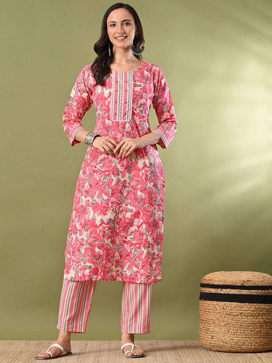Buy this stylish HARIKS Floral Printed Round Neck Pure Cotton Straight Kurta & Trousers With Dupatta at Marincart Nepal. This product offers great quality and value. Perfect for those looking for the latest trends in fashion. Get yours now at unbeatable prices.