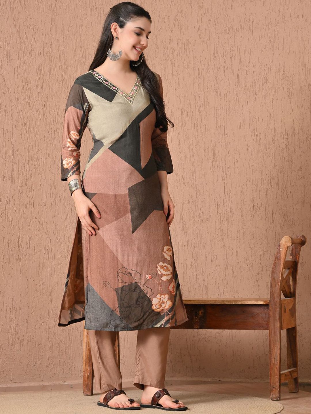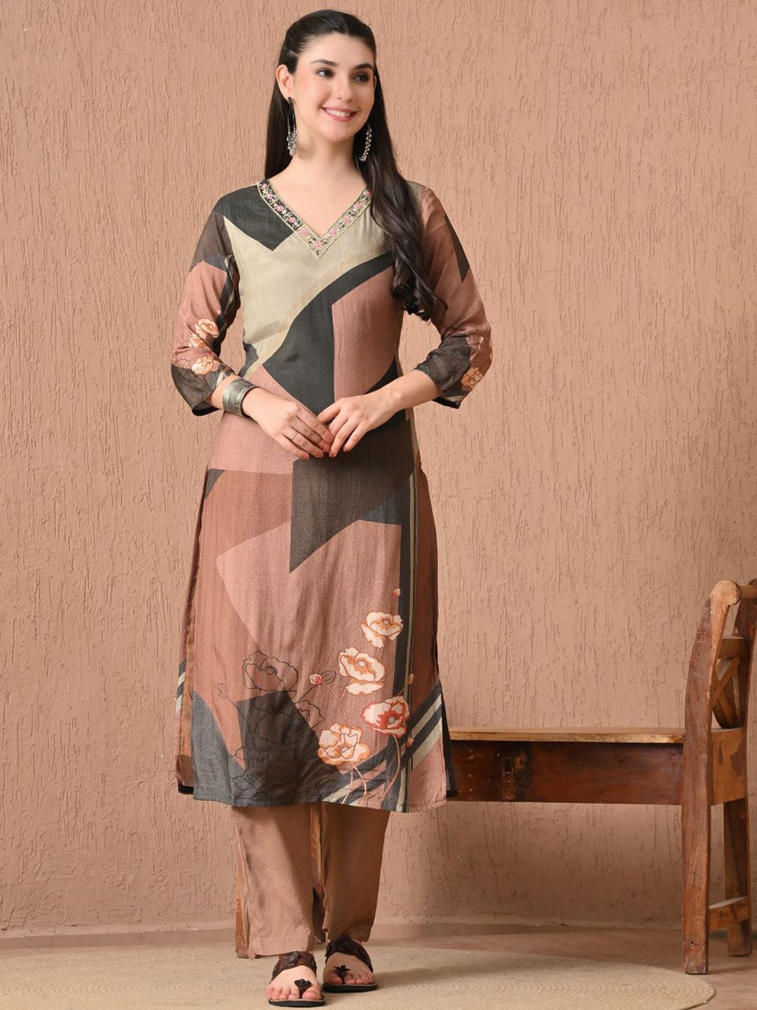 HARIKS Women Abstract Printed Silk Kurta with Trousers & Dupatta
