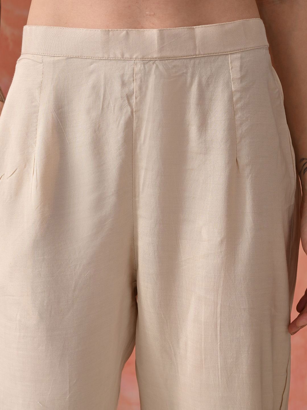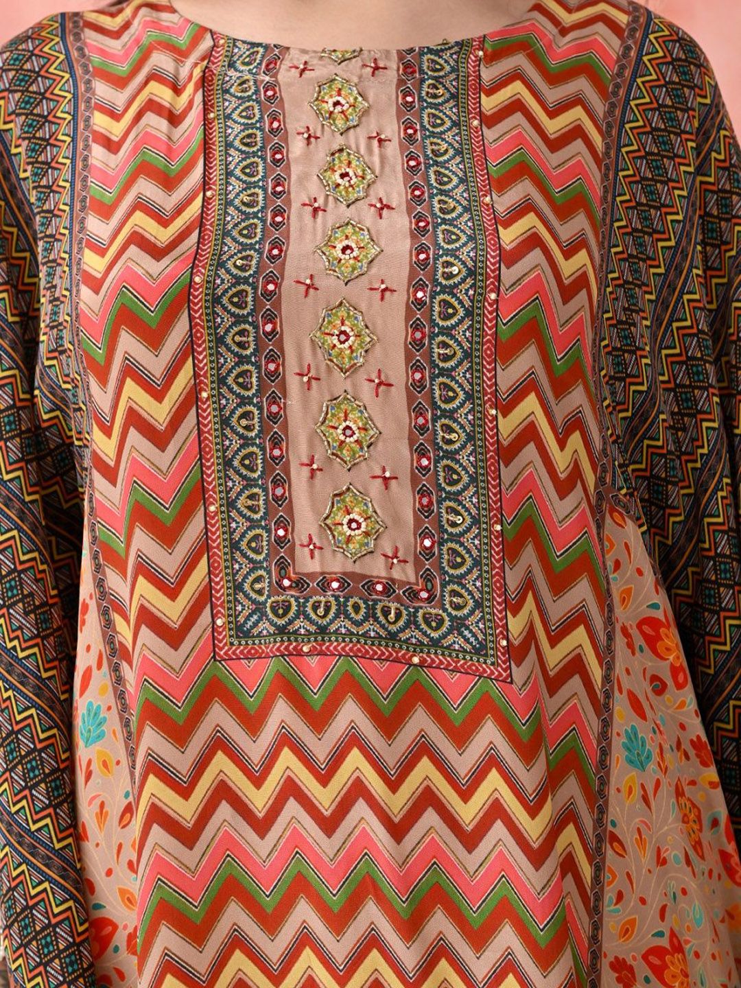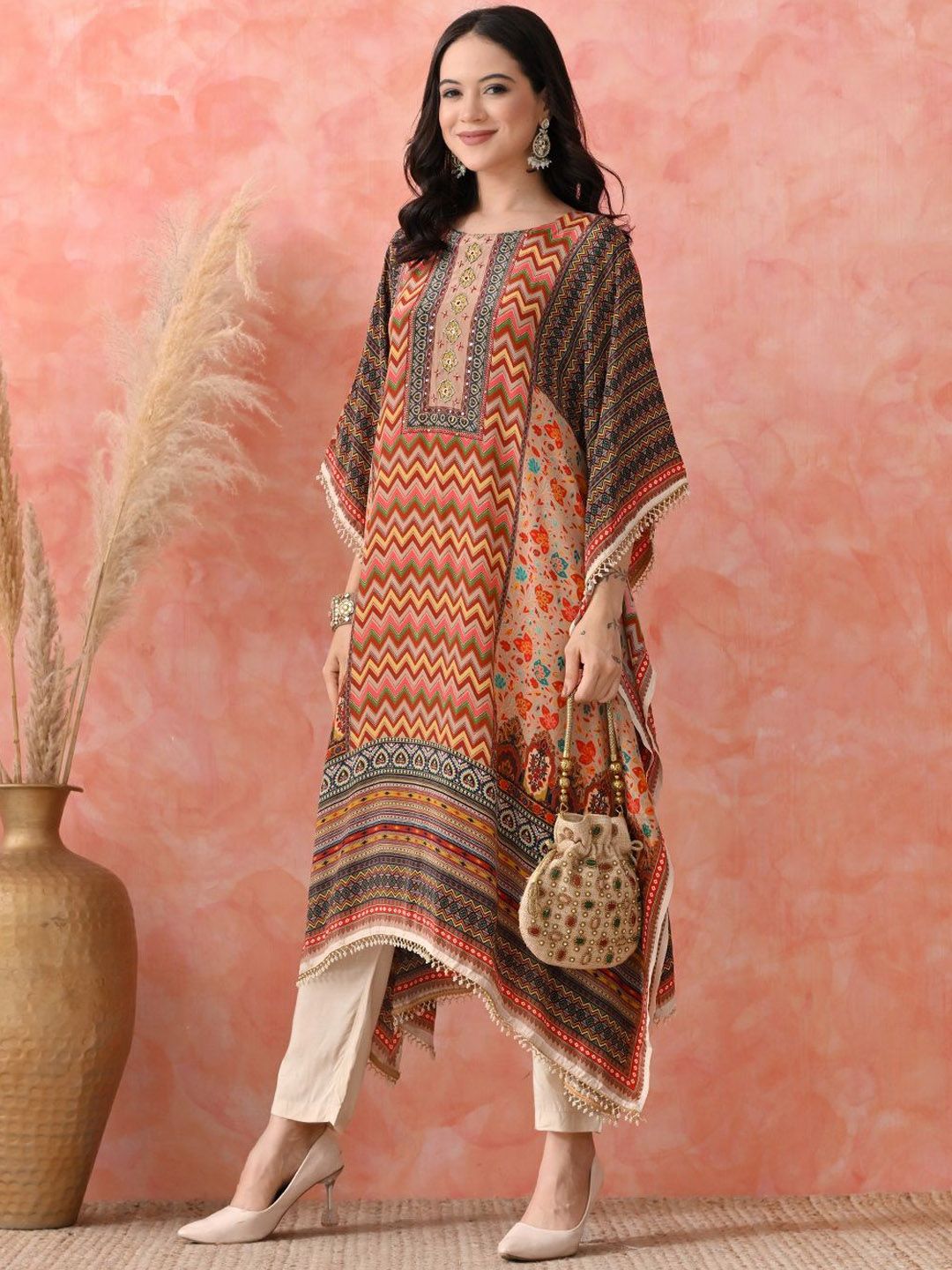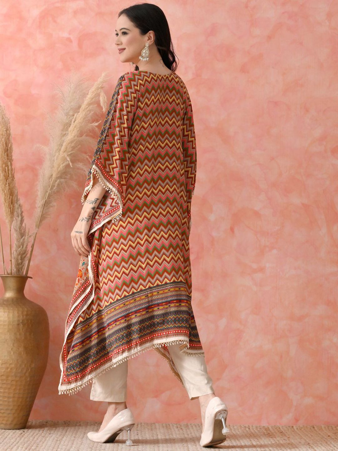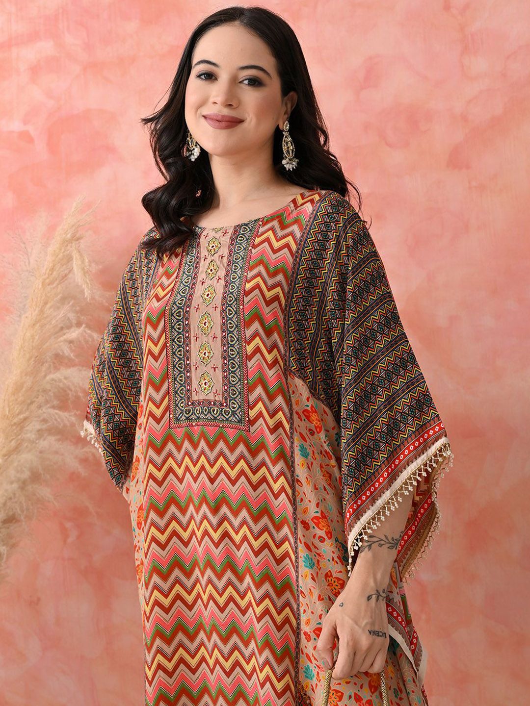 HARIKS Women Chevron Striped Cotton Kaftan Kurta with Trousers