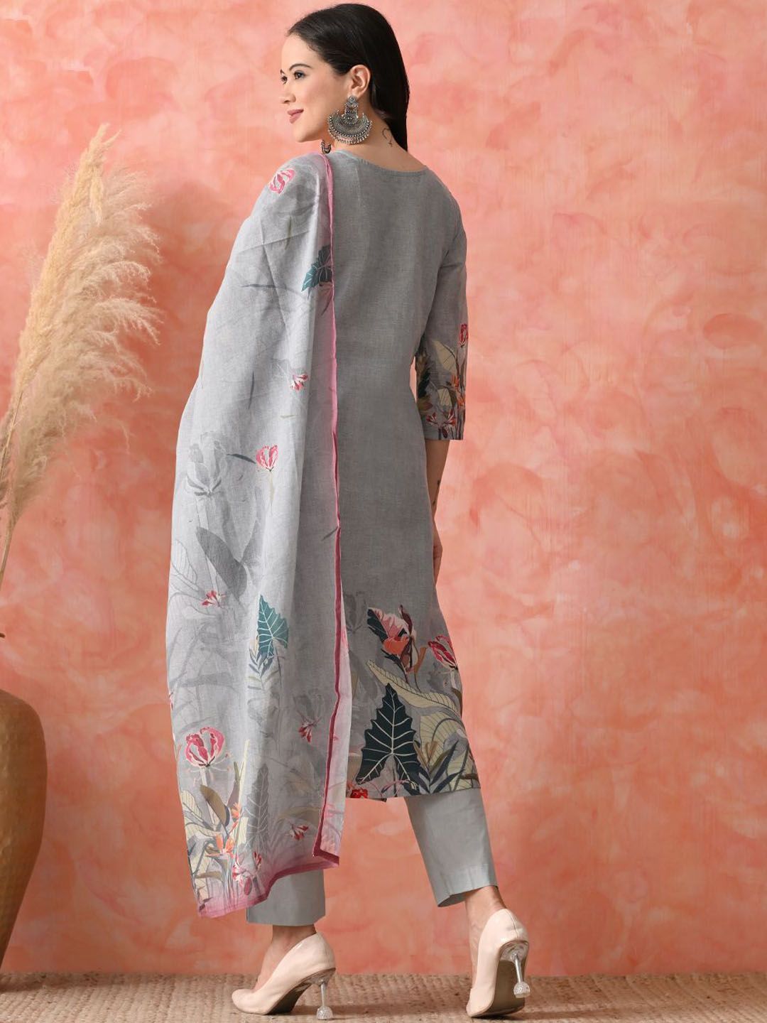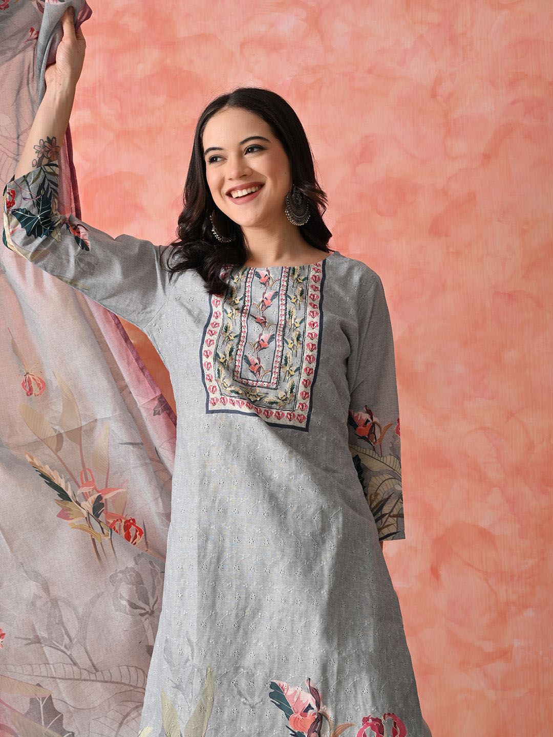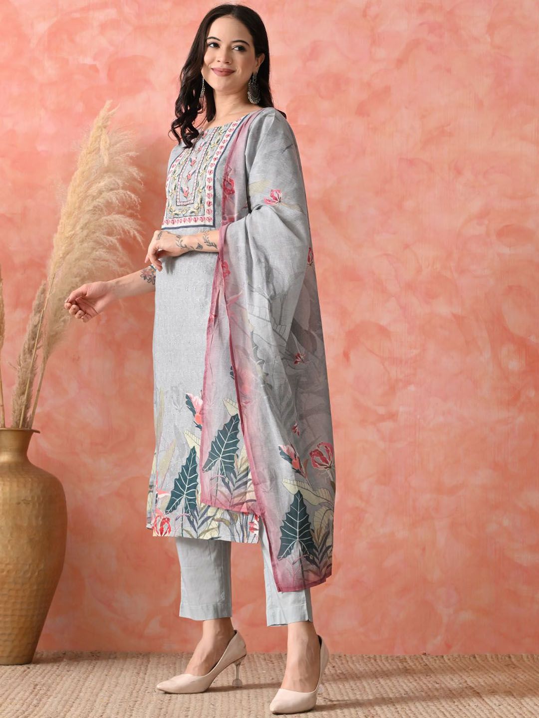 HARIKS Women Floral Embroidered Regular Kurta with Trousers & Dupatta