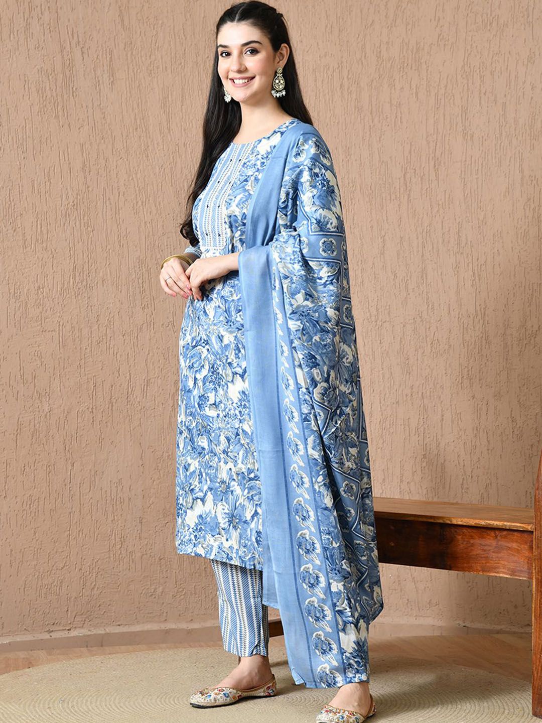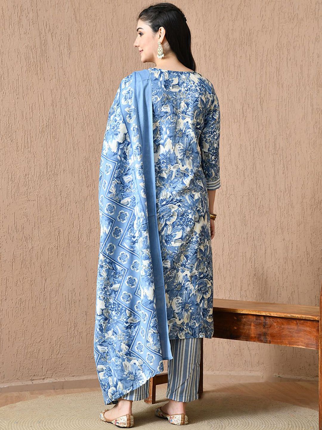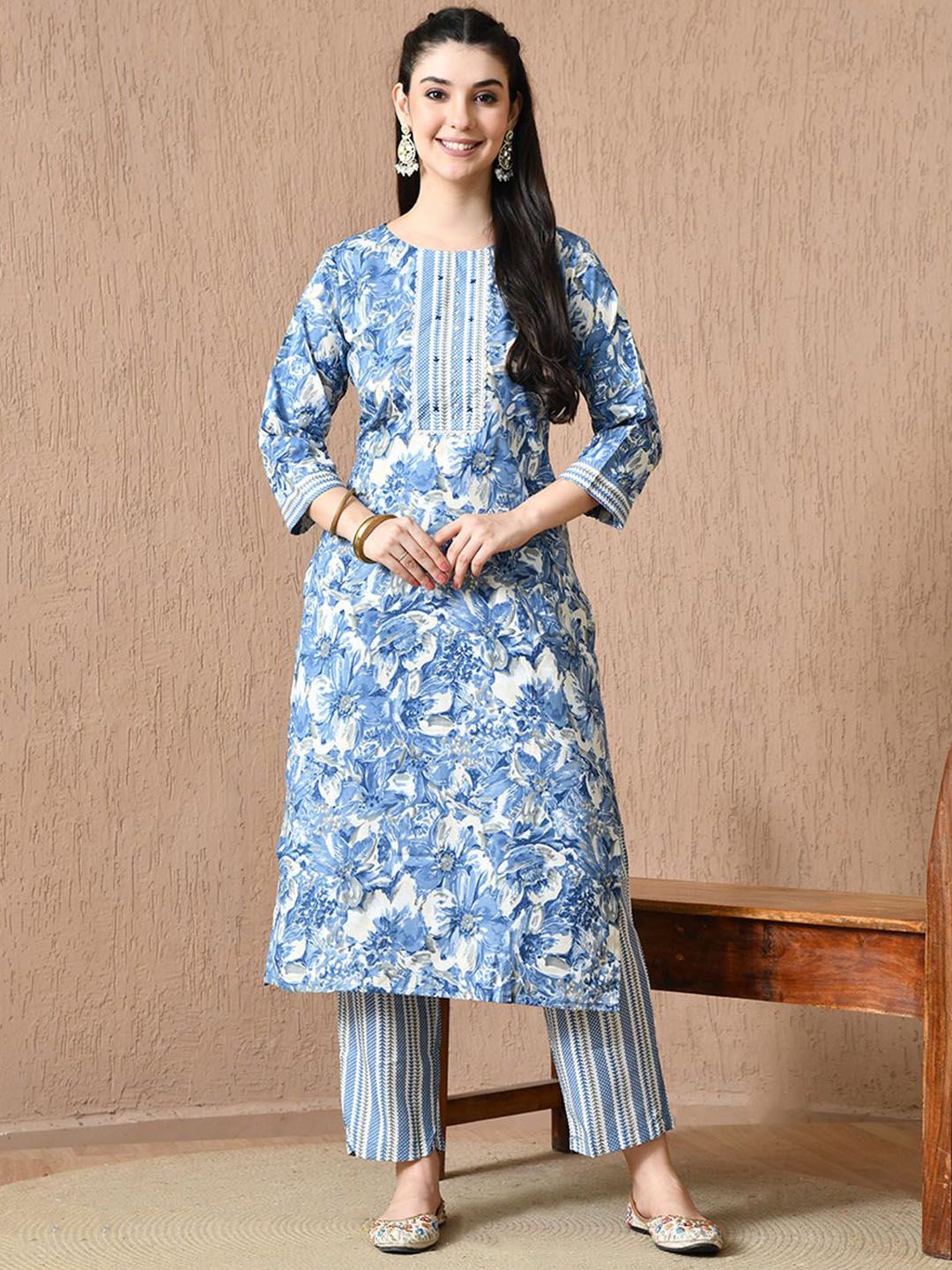 HARIKS Women Floral Printed Cotton Kurta with Trousers & Dupatta