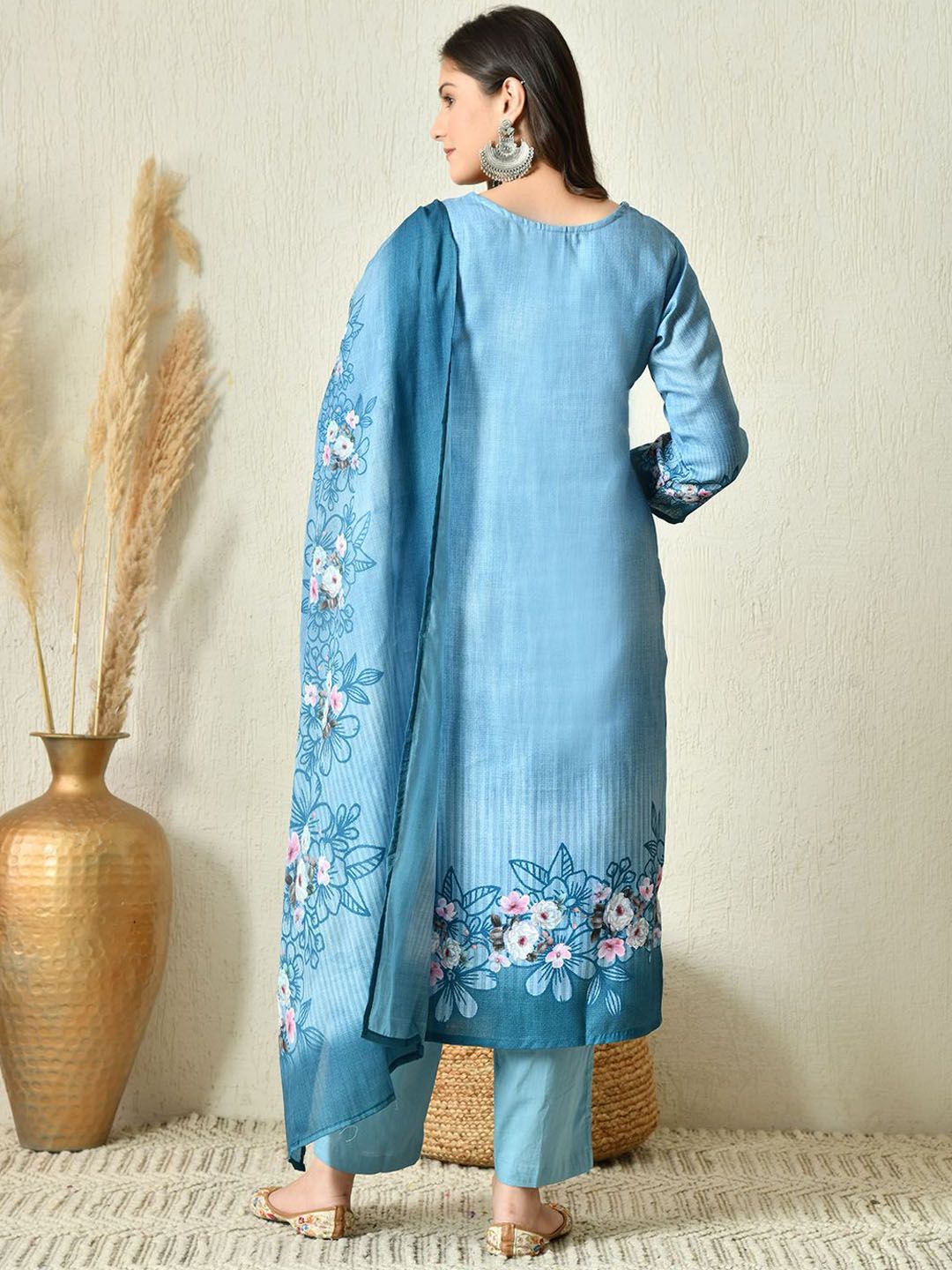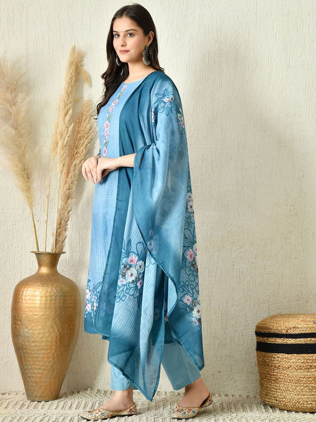 HARIKS Women Floral Printed Linen Kurta with Trousers & Dupatta