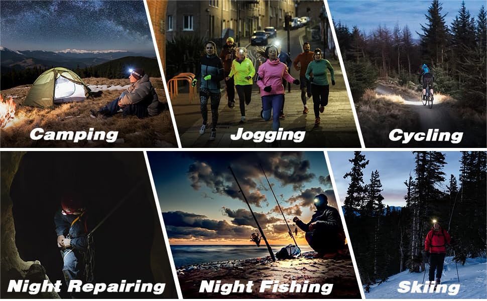 Headlamp Torch, USB Rechargeable Water Resistance 12000 Lumen Ultra Bright Single LED Zoomable Flashlight with Keychain Led Light for Trekking, Camping (New 5 Led Headlamp)