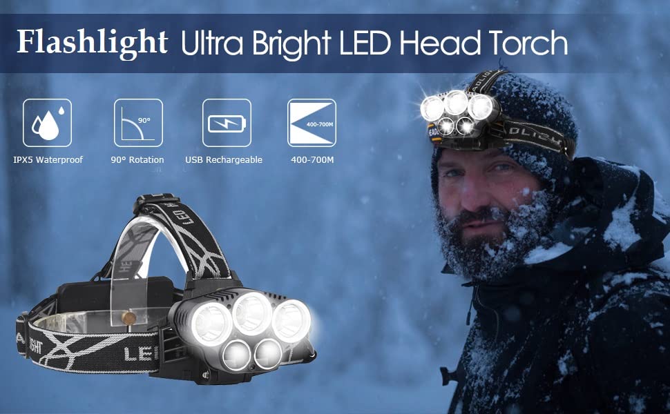 Discover the Headlamp Torch, USB Rechargeable Water Resistance 12000 Lumen Ultra Bright Single LED Zoomable Flashlight with Keychain Led Light for Trekking, Camping (New 5 Led Headlamp). This product is designed to enhance your experience and meet all your expectations. Built with the best materials, it guarantees exceptional quality and performance. Ideal for all your needs.