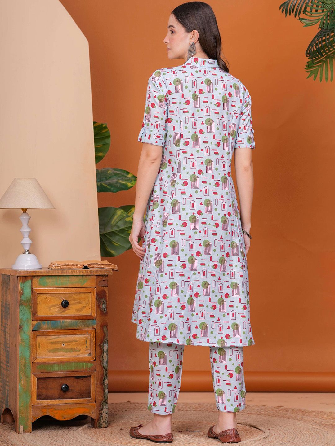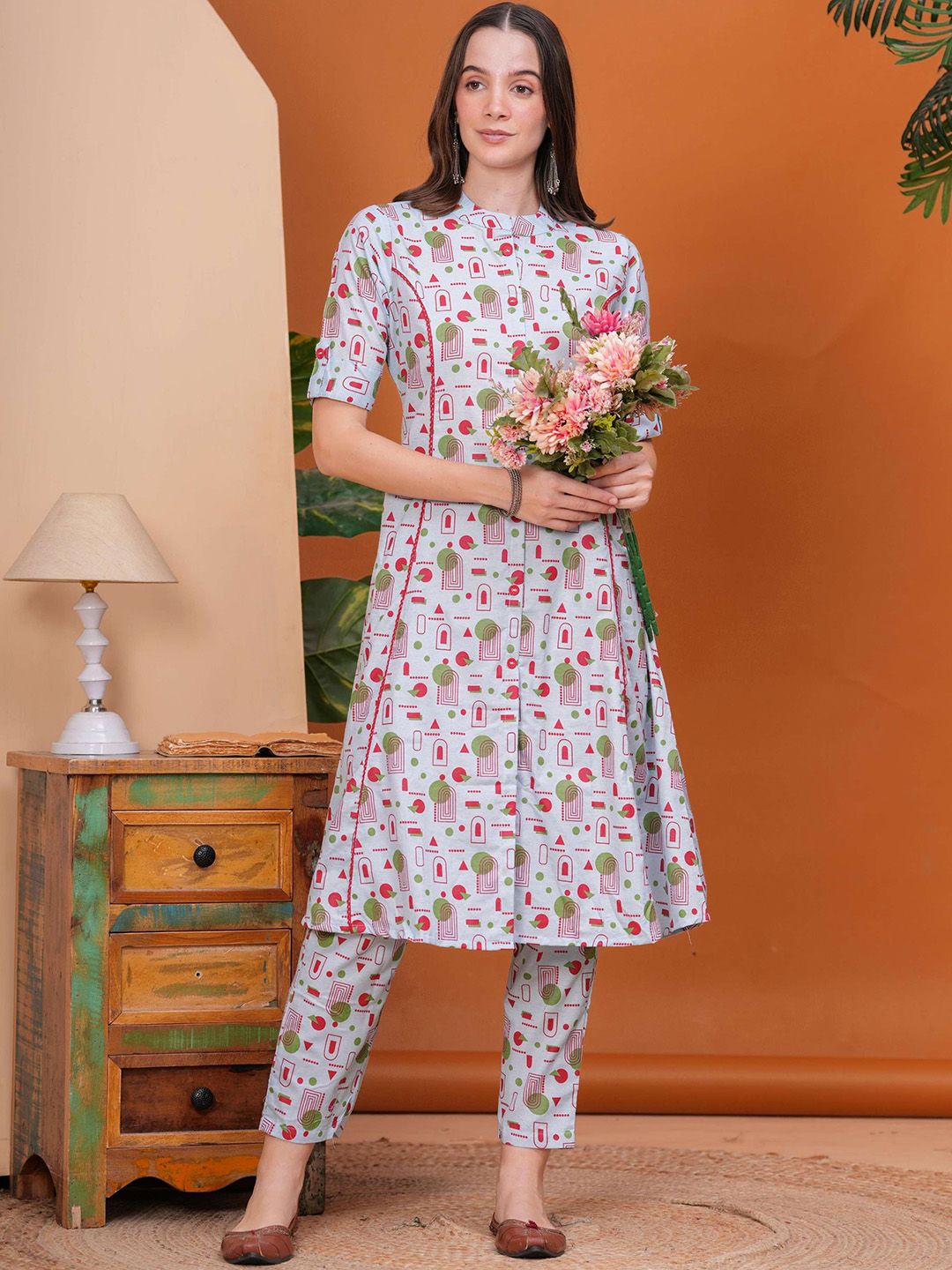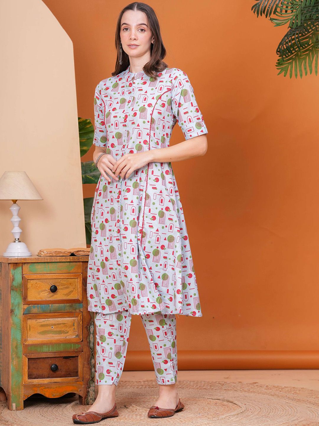 HEARTLOOM Women Ethnic Motifs Printed A-Line Kurti with Trousers