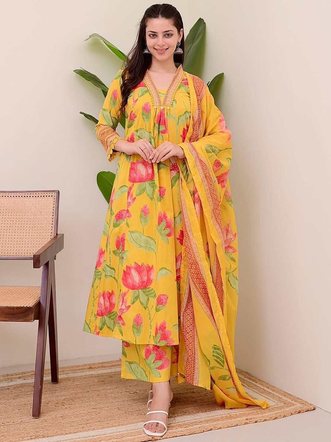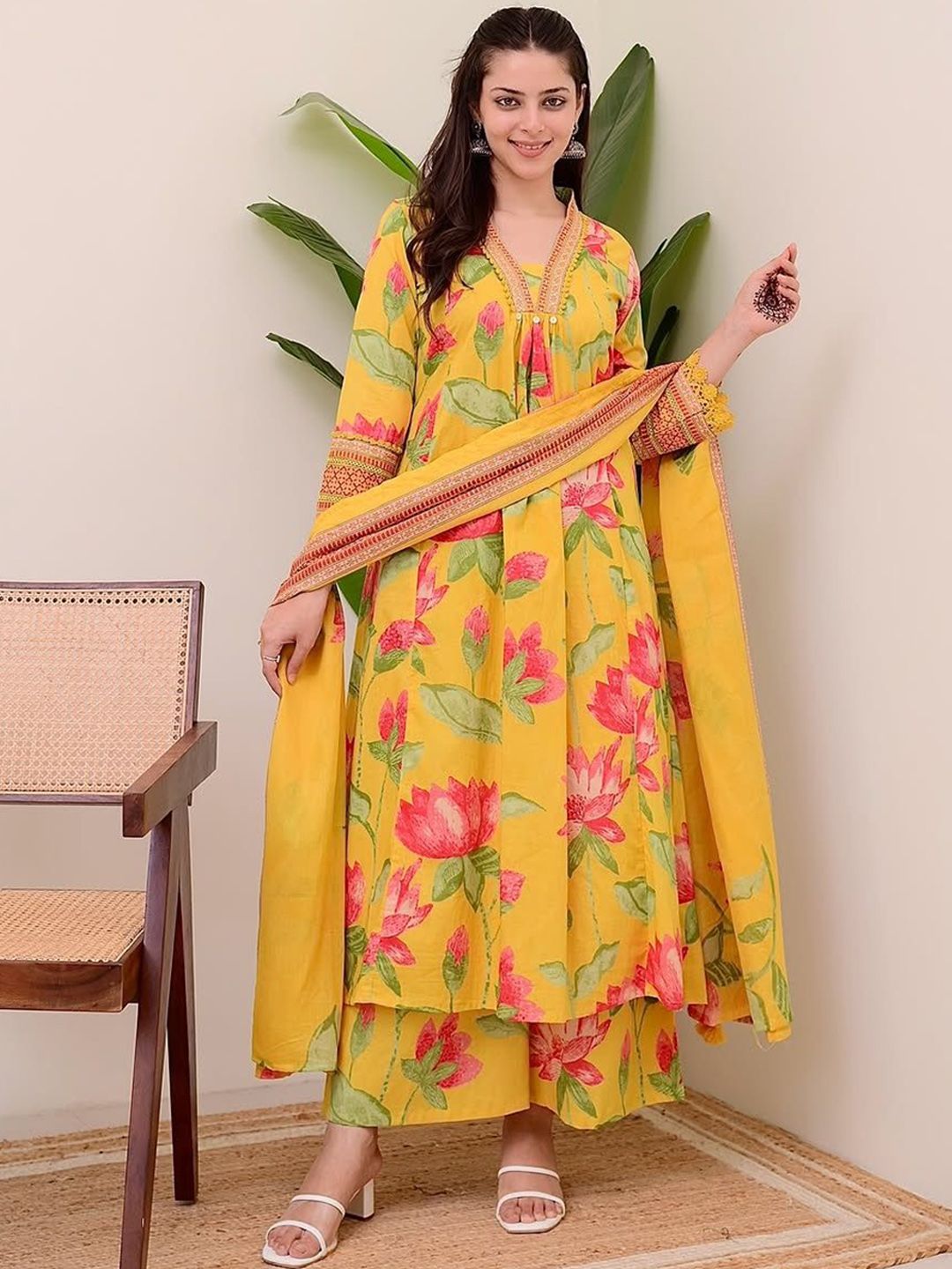 Buy this stylish Heavenly Attire Floral Printed Regular Beads and Stones Kurta with Palazzos & Dupatta at Marincart Nepal. This product offers great quality and value. Perfect for those looking for the latest trends in fashion. Get yours now at unbeatable prices.