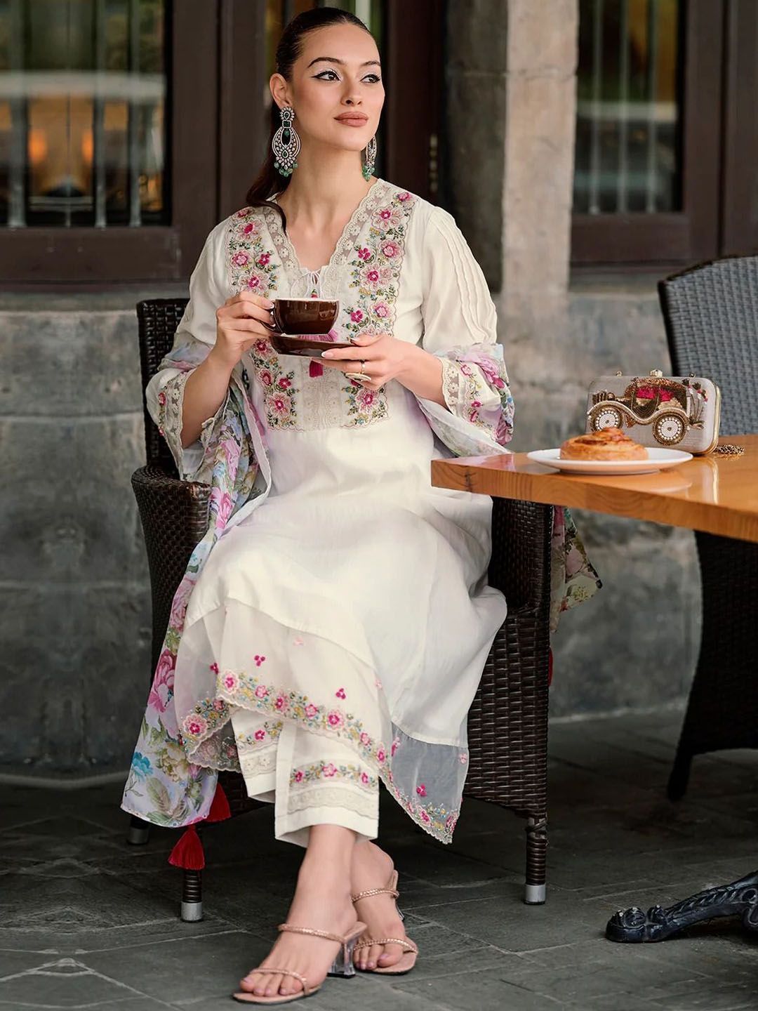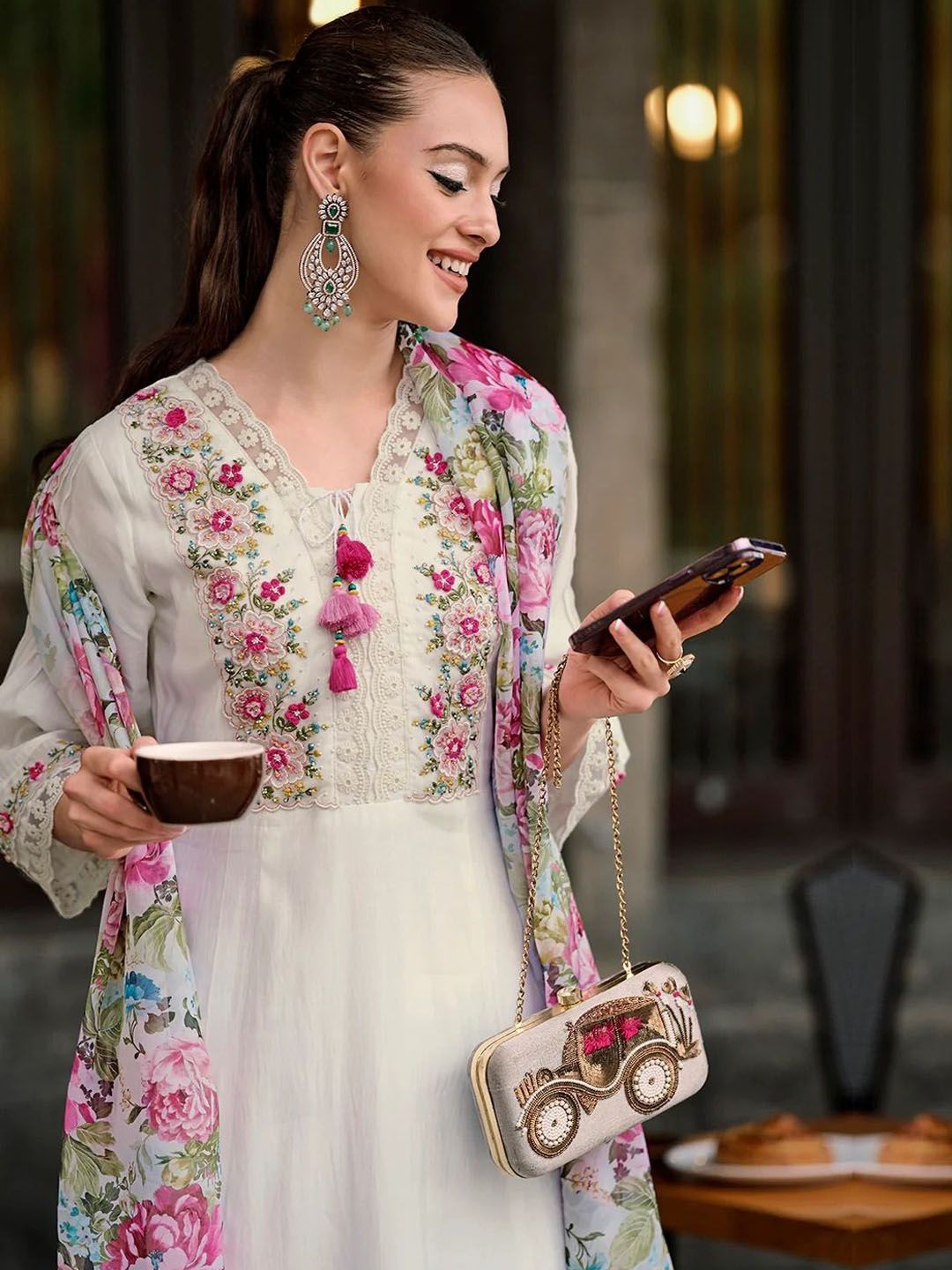 Helene Women Floral Embroidered Kurta with Trousers & Dupatta