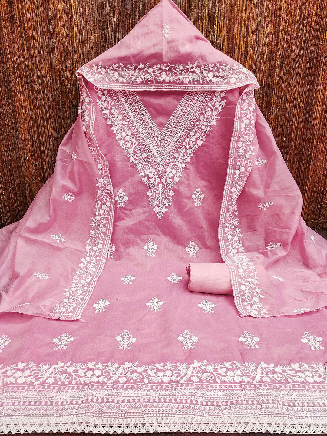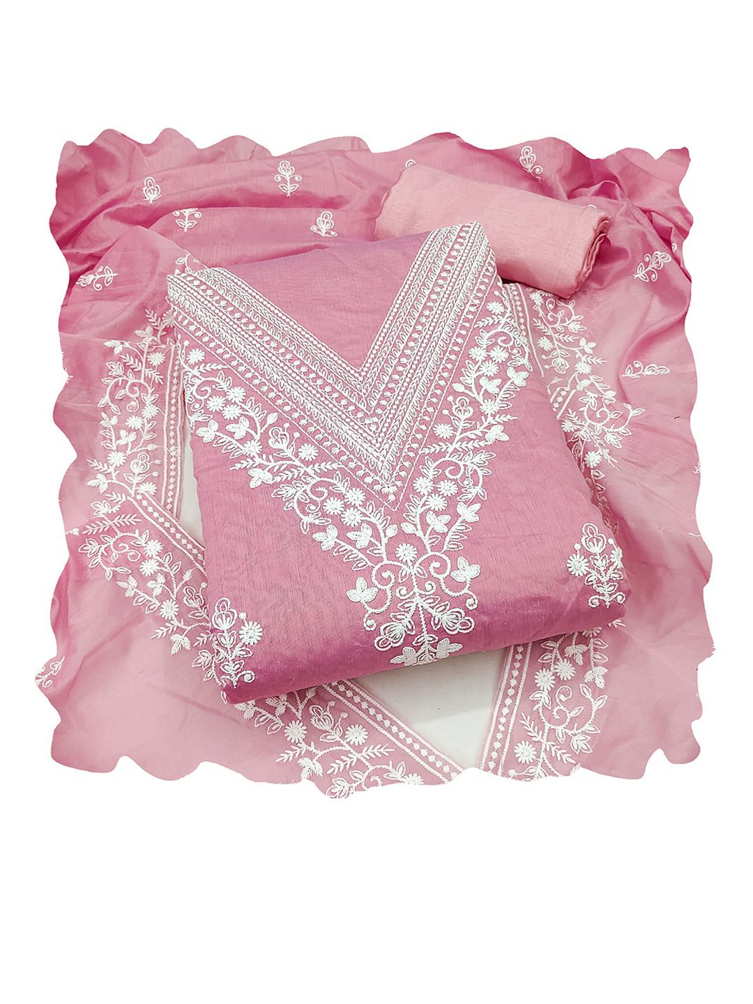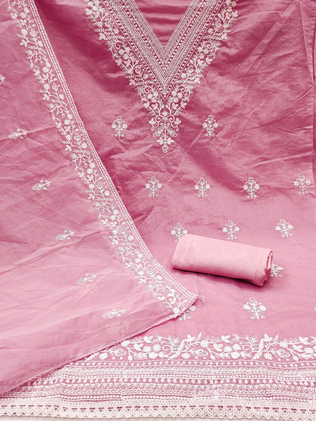 HERE&NOW Floral Embroidered Thread Work Chanderi Cotton Unstitched Dress Material